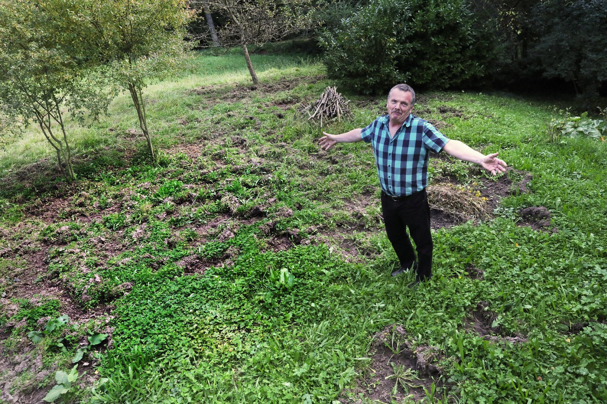 „So wie es jetzt aussieht, bin ich zwei Tage beschäftigt“: Alfred Widmanns rund ein Ar große Wiese bei der Schnaiter Buchhalde gleicht einem Acker. Mittlerweile zum vierten Mal haben Wildschweine sein Grundstück umgepflügt, das er vor rund zwei Jahren erworben hat. Probleme mit Wildschweinen hatte er davor noch nie. Er fragt sich schon, ob es ein Fehler war, das Stückle zu mähen – denn auf niedrigem Gras, das hat er mittlerweile erfahren, fühlen sich die Tiere besonders wohl. Nun will Alfred Widmann erst mal alles so lassen, wie es ist – und den Schaden im Spätherbst beheben. Das haben ihm Leute geraten, die von den Gewohnheiten der Wildschweine Ahnung haben. „Man arbeitet ja nicht umsonst.