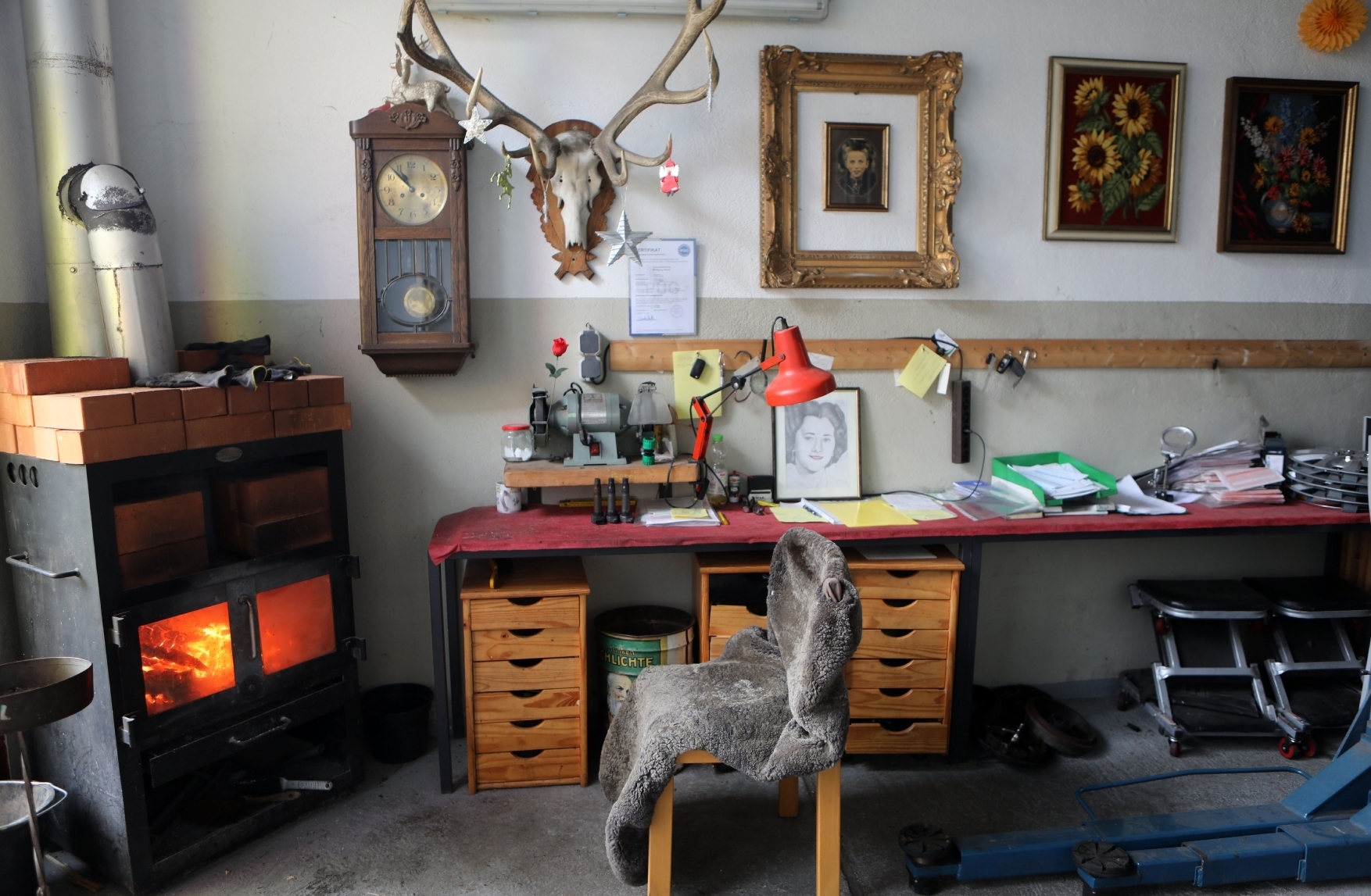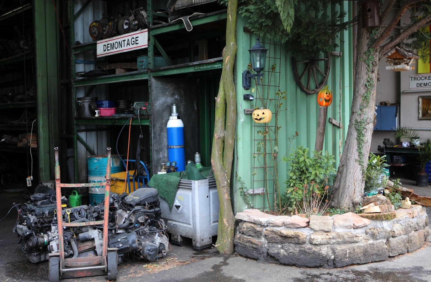 „Schrottplatz“ steht in gelben Buchstaben auf dem Schild in der Eisentalstraße 5. Doch hinter dem grünen Tor merkt der Besucher gleich: Dieser Schrottplatz ist kein normaler. Wer durch die Autoverwertung von Wolfgang Resch schreitet, geht vorbei an einem Hühnerstall, in dem eine emsige Schar von Hühnern, ein prächtiger Hahn und sechs weiße Tauben ihr Zuhause haben. Auf dem Schrottplatz blühen Forsythien und wachsen Primeln in