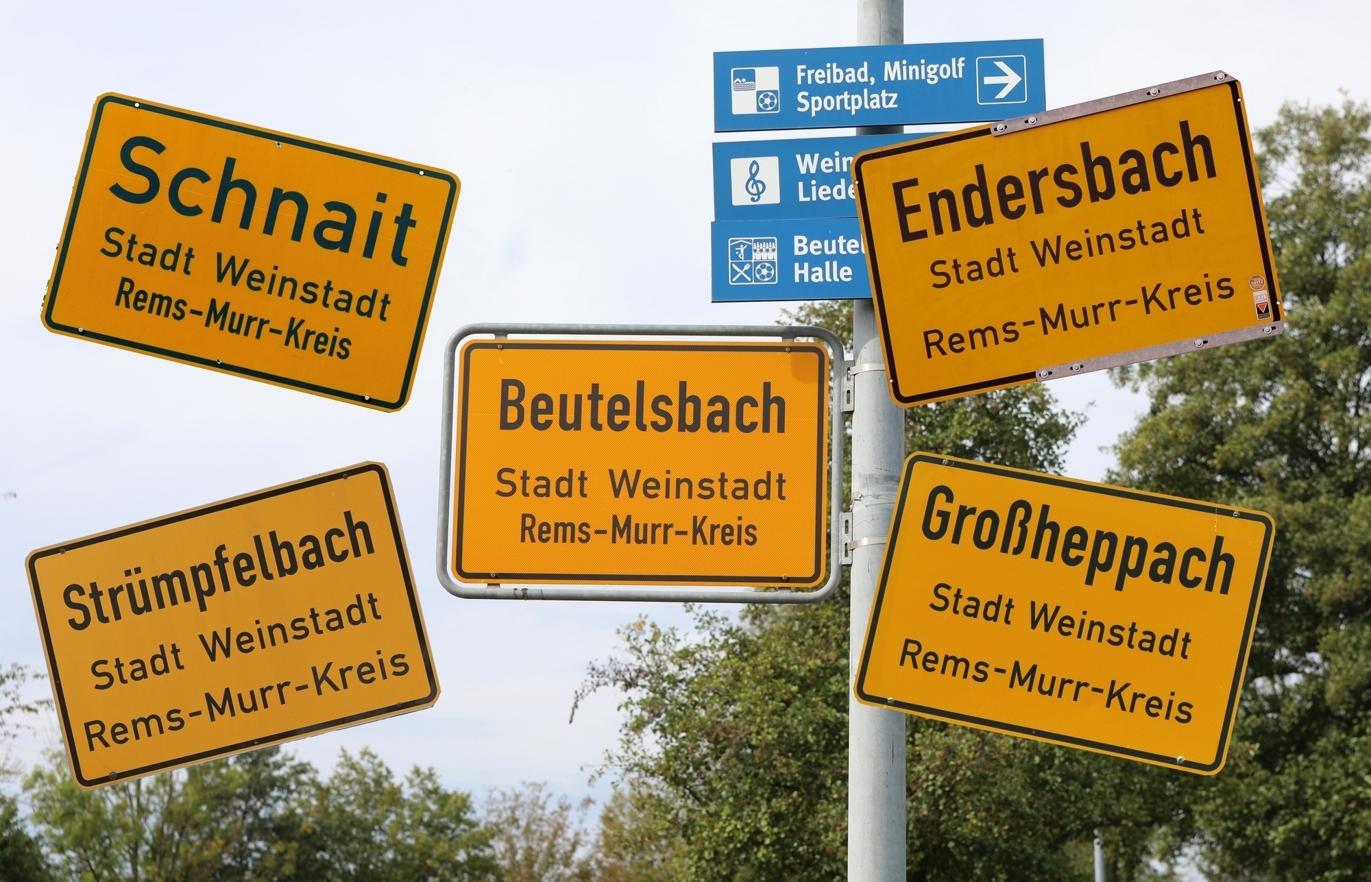 Ein Grund dafür, dass die Schilder überhaupt ausgetauscht worden sind, ist, dass bislang der Hinweis auf den Status der „Großen Kreisstadt“ gefehlt hat. Dabei kommt Weinstadt mit seinen Stadtteilen Endersbach, Beutelsbach, Großheppach, Strümpfelbach und Schnait auf knapp 27.000 Einwohner und trägt diesen Titel, der in Baden-Württemberg ab 20.000 Einwohnern vergeben wird, schon seit 1979. Die auffälligste Neuerung ist allerdings, dass jetzt nicht mehr der Stadtteil in großen Lettern auf den Schildern steht, und darunter klein „Stadt Weinstadt“, sondern umgekehrt.