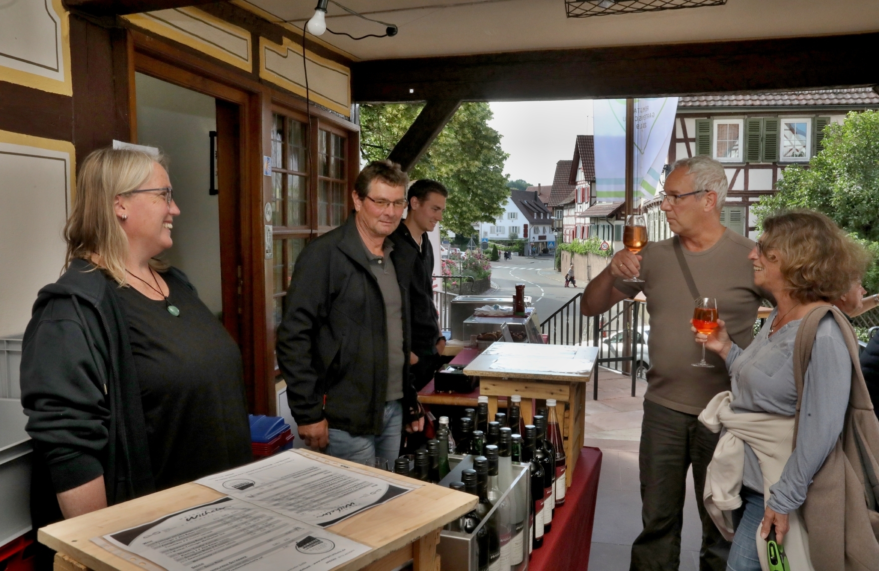 Noch bis zum 21. August 2024 können Weinliebhaber jeden Mittwoch von 17 bis 21 Uhr unter der Laube des alten Rathauses von Strümpfelbach Weine trinken. Seit Anfang Mai schenken dort wieder Weinerzeuger aus dem Ort aus. Auch das Brunnenplätzle am Rathaus lädt nach Feierabend zum Verweilen ein. In naher Zukunft ist es aber damit erst mal vorbei: Weil die Arztpraxis von Gunther Bareiß und Christof Bräunlich vorübergehend ins Alte Rathaus zieht und davor Umbaumaßnahmen notwendig sind, kann die