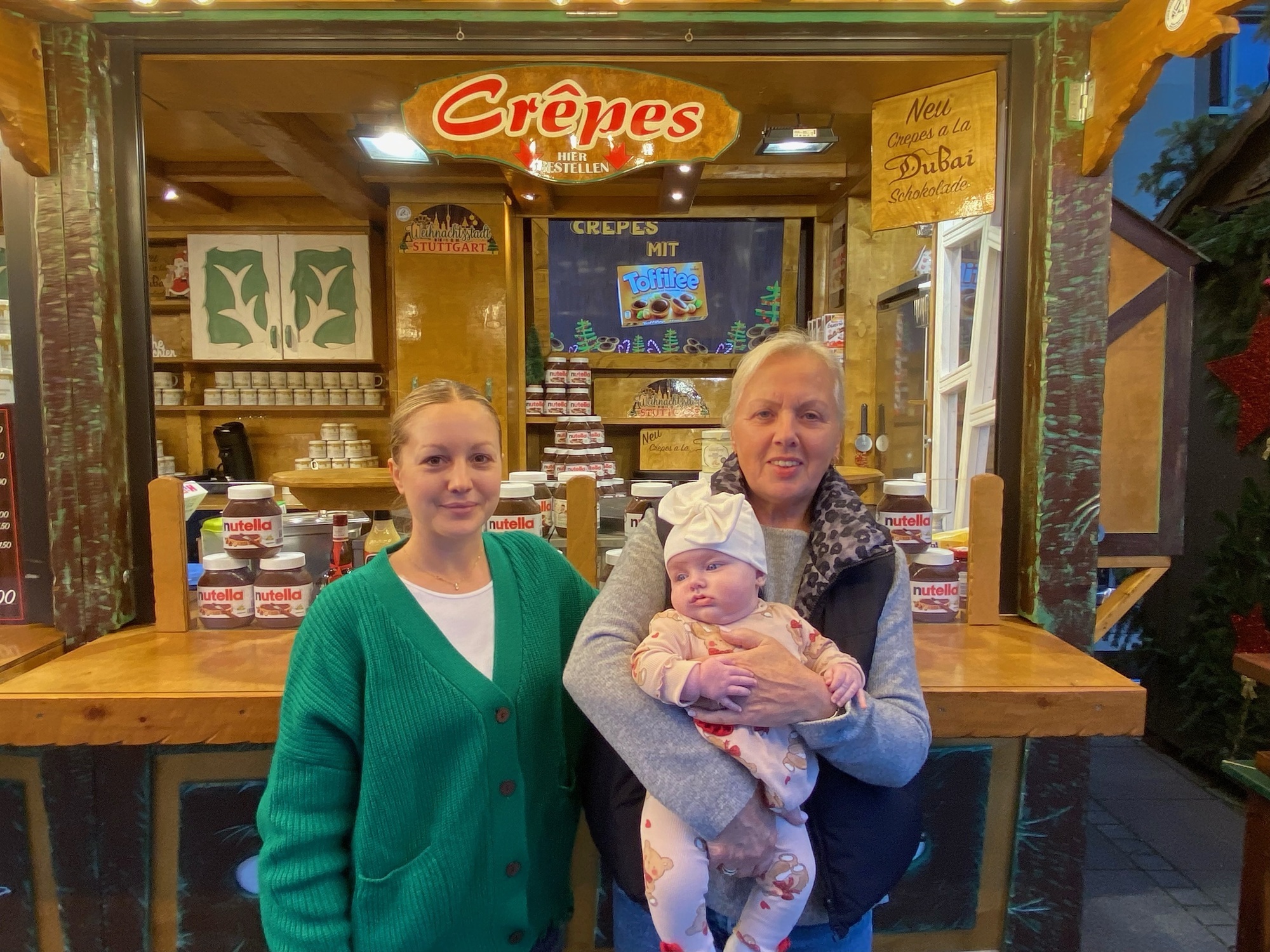 Weinstadt. Seit mehr als 30 Jahren hat Gudrun Weeber einen Crêpes-Stand auf dem Weihnachtsmarkt in Stuttgart - und auch 2024 ist sie dort vor dem Königsbau wieder mit ihrer Tochter Sina Rasch präsent. Die beiden Frauen aus Weinstadt verkaufen unter anderem Crêpe mit Dubai-Schokolade , die derzeit im Trend ist. Der Stand ist neu, Schwiegersohn Dennis Rasch hat ihn aufgebaut. Was viele nicht wissen: Die Weihnachtsmarkthütte, die einst in Deutschland gebaut wurde, ist vor Jahren in einem
