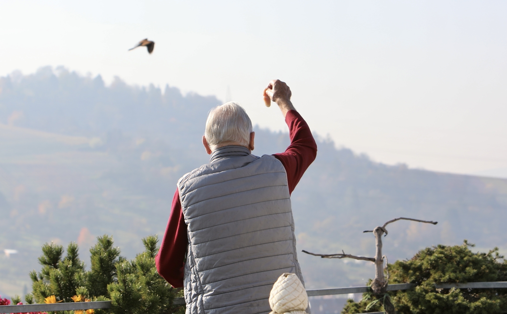 Seit der hübsche Raubvogel sich das erste Mal auf dem abgestorbenen Rebstock auf ihrer Terrasse niedergelassen hat, legen Günther Koch und Renate Müller ihm immer etwas