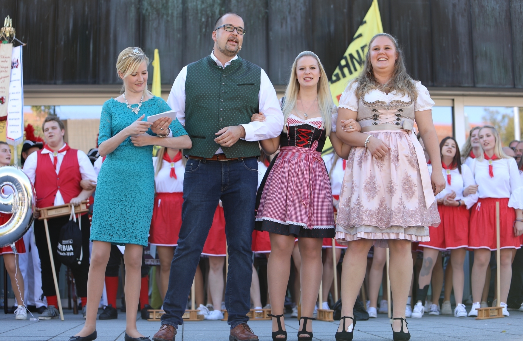 Zum Schlag der Kirchturmuhr knattern erneut die Rätschen ohrenbetäubend. Wie es sich für die Kirbe gehört, singt der grüne Jahrgang das Beutelsbacher Kirbelied, und der Musikverein spielt zünftige Melodien und Märsche. Um die Tradition habe er angesichts von 38 Kirbemädchen und Kirbebuben keine Angst, sagt der Oberbürgermeister. „Die Kirbe verbindet, sie ist ein Band fürs Leben“, ruft er in die Menge. Es treffen sich Menschen wieder, die sich ewig nicht mehr gesehen haben. „Die Beutelsbacher kehren für die Kirbe zurück in ihren Ort“, so Michael Scharmann weiter. Stolz könne man sein, einen alten Brauch zu pflegen, sagt die Württembergische Weinprinzessin Laura Irouschek. „Gerade wir Württemberger haben die Balance geschafft zwischen Modernem und Traditionen.“ Bestens in Szene gesetzt von rappenden Schülern: Die Winzergruppe der Grundschule Beutelsbach rappt in Kleidern und Hosen, die an bäuerliche Trachten denken lassen, zur „goldenen Herbstzeit“.