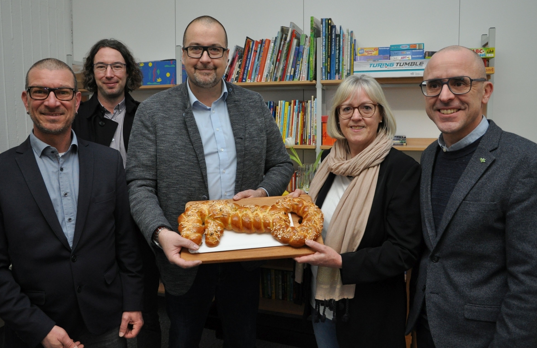 Mehr Platz, mehr Räume und eine bessere Lage: Das Familienzentrum Weinstadt, das von der Stadt Weinstadt als Kooperationsprojekt mit der Evangelischen Gesellschaft Stuttgart seit 2015 betrieben wird, hat an der Nelkenstraße 39 neue Räume bezogen. Zur Feier des Tages hat Oberbürgermeister Michael Scharmann am Mittwoch symbolisch einen Schlüssel an Leiterin Margret Mack übergeben - und das in gebackener Form.
