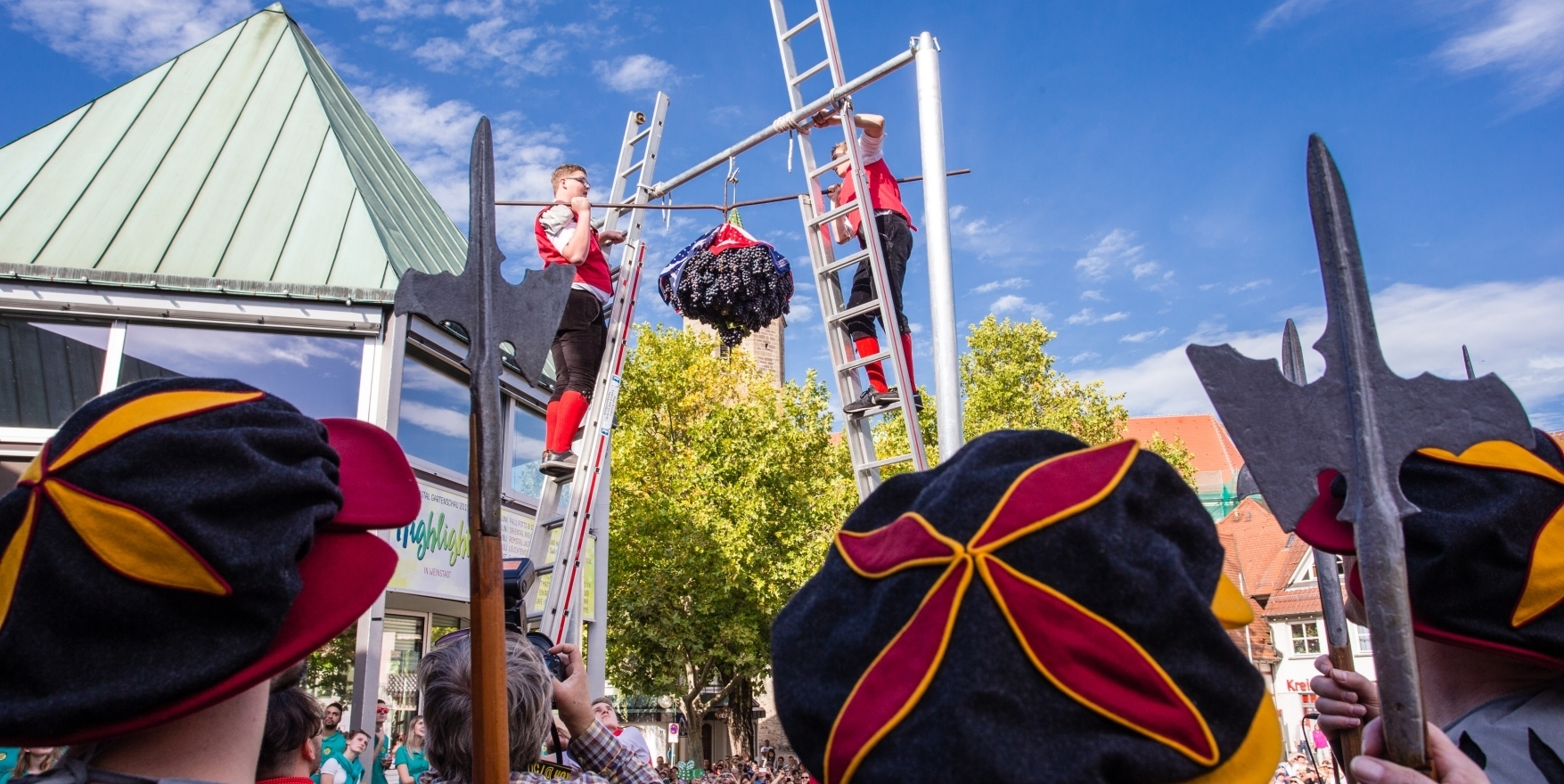 Weinstadt-Beutelsbach. Unter strahlend blauem Himmel und bei fast hochsommerlichen Temperaturen strebte die Beutelsbacher Kirbe am Sonntag ihrem Höhepunkt zu, dem Aufhängen des Traubens und der Weitergabe der Tradition an den nachfolgenden Jahrgang.