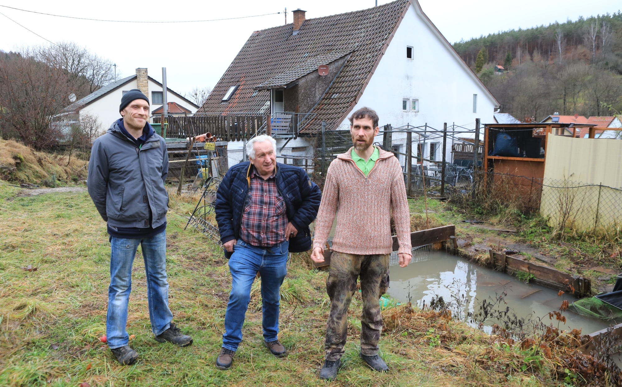 Im ehemaligen Mühlbach am Ortsrand von Baach sprudelt nach den Regenfällen der vergangenen Tagen munter das Wasser. Doch auch unter der Oberfläche herrscht viel Bewegung: Dort huschen dunkle Schatten umher, hin und wieder durchbricht eine zappelnde Schwanzflosse die Oberfläche. Etwa 900 Kilogramm lebende Fische tummeln sich hier nämlich im Wasser. Diese werden von Matthias Layer regelmäßig geschlachtet und dann für den Verkauf geräuchert – oder sie landen im Gastraum des Baacher