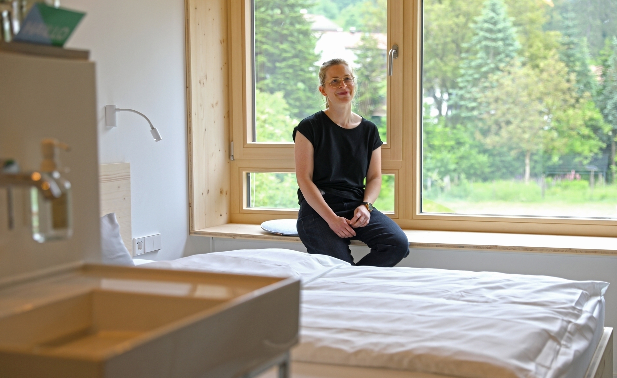 In ihrem winzigen Heimatort Baach, direkt gegenüber der Gaststube ihres Vaters, hat Nina Kiesel (33) ein Seminarhaus gebaut. Das Konzept: Geschäftsleute, die dem Trubel der Stadt oder des Großraumbüros entfliehen wollen, sollen im hintersten Winkel von Weinstadt Ruhe finden und kreativ werden. Aber auch Touristen können die 16 Zimmer buchen. Seit wenigen Tagen hat das „Haaus“ geöffnet.