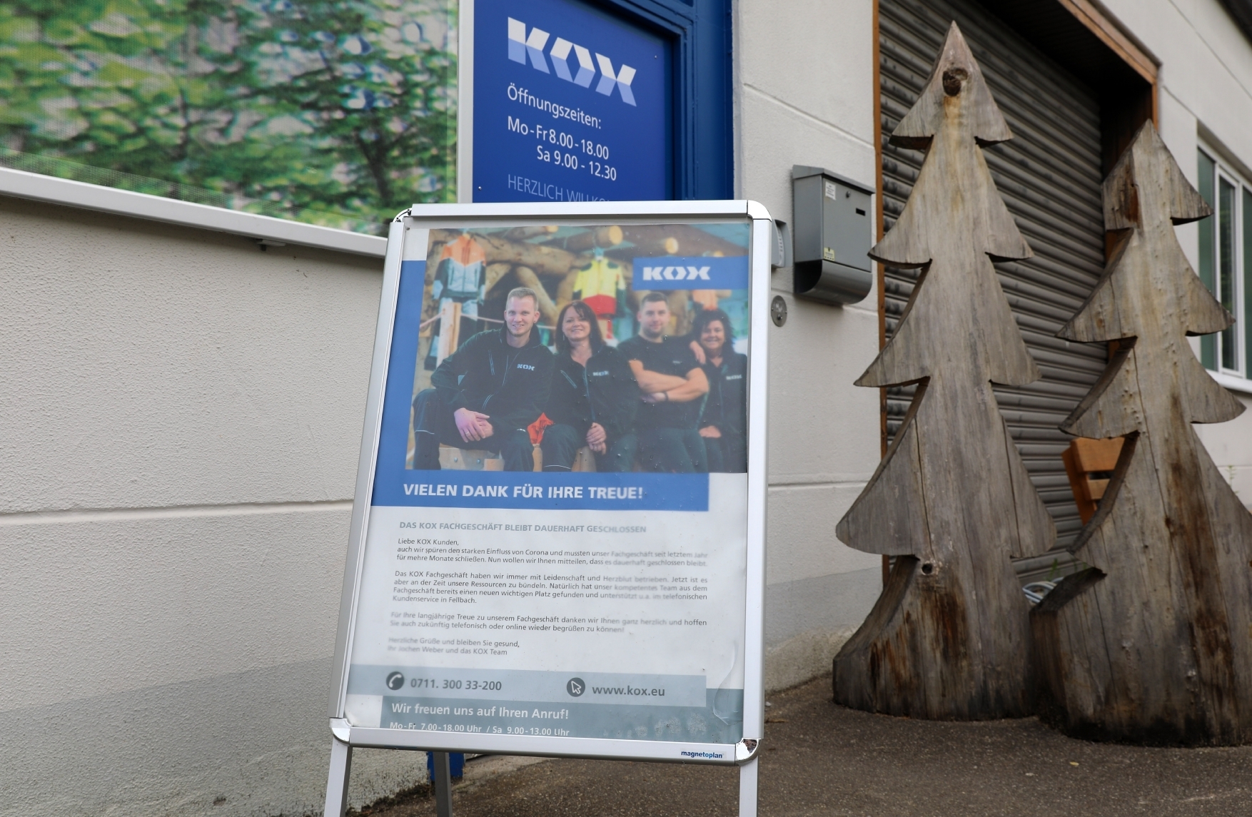 Die Stammkunden in Endersbach wissen es schon seit einiger Zeit: Das KOX-Fachgeschäft in Endersbach bleibt geschlossen. In einem Kundenbrief, den der Hersteller von Ausrüstung und Zubehör für die Forst-, Agrar-, Garten- und Landschaftsindustrie im Mai versendet hat, werden die Corona-Krise und die Konzentration auf das erfolgreiche Online-Geschäft als Grund für die Schließung genannt.