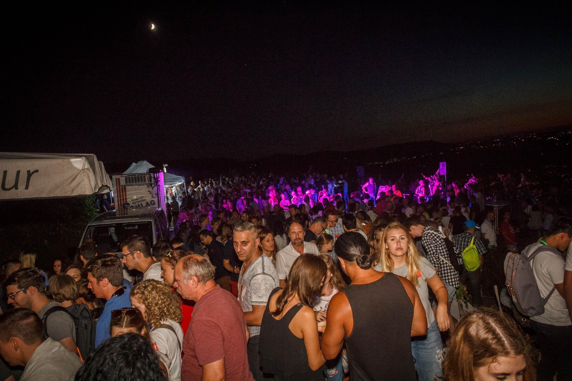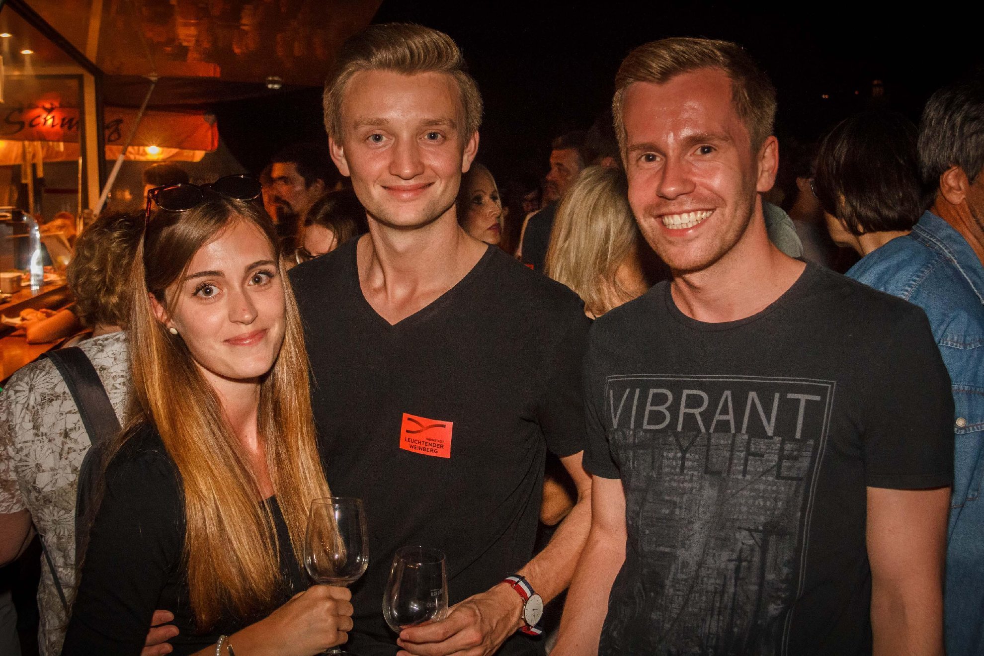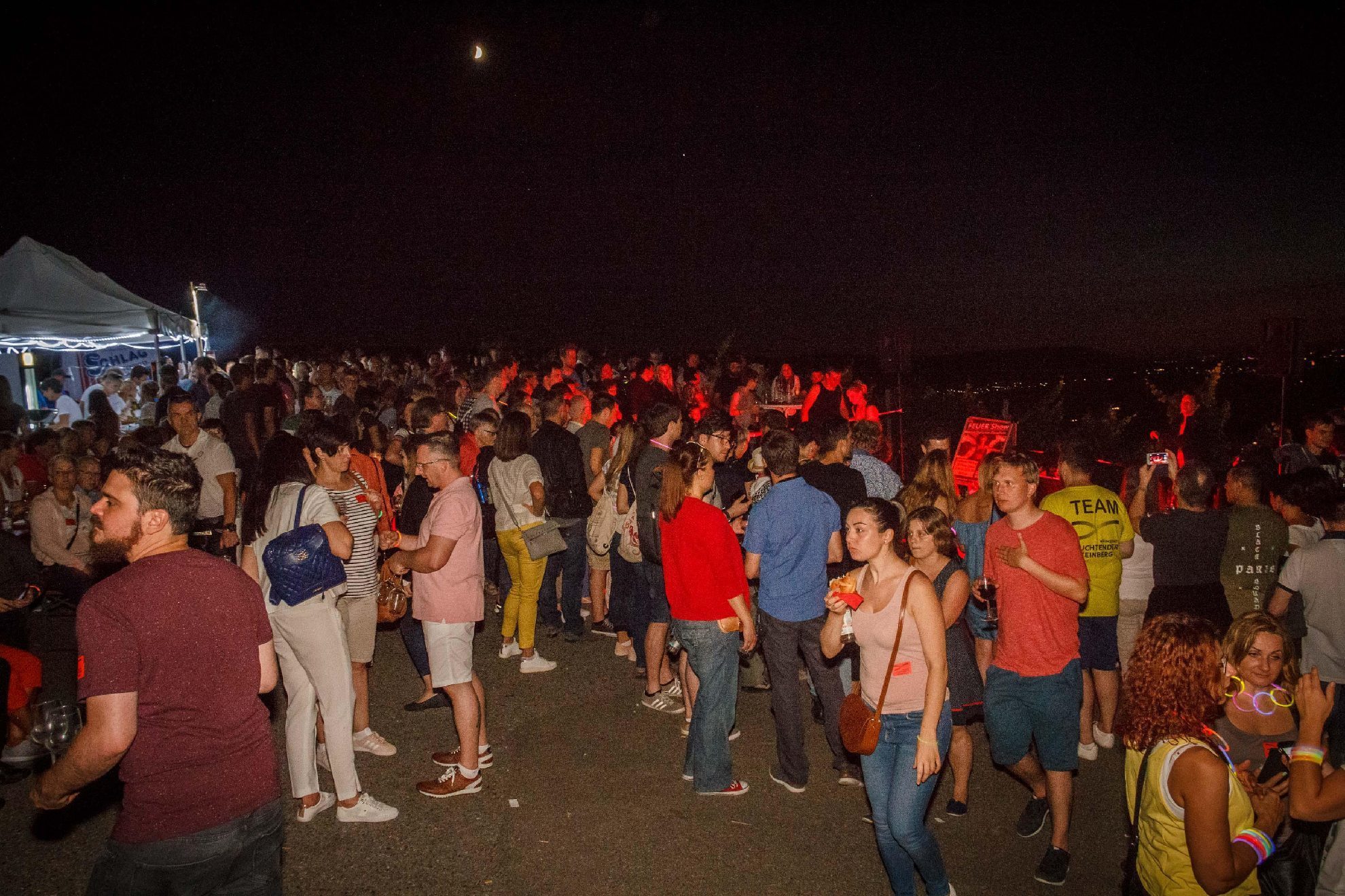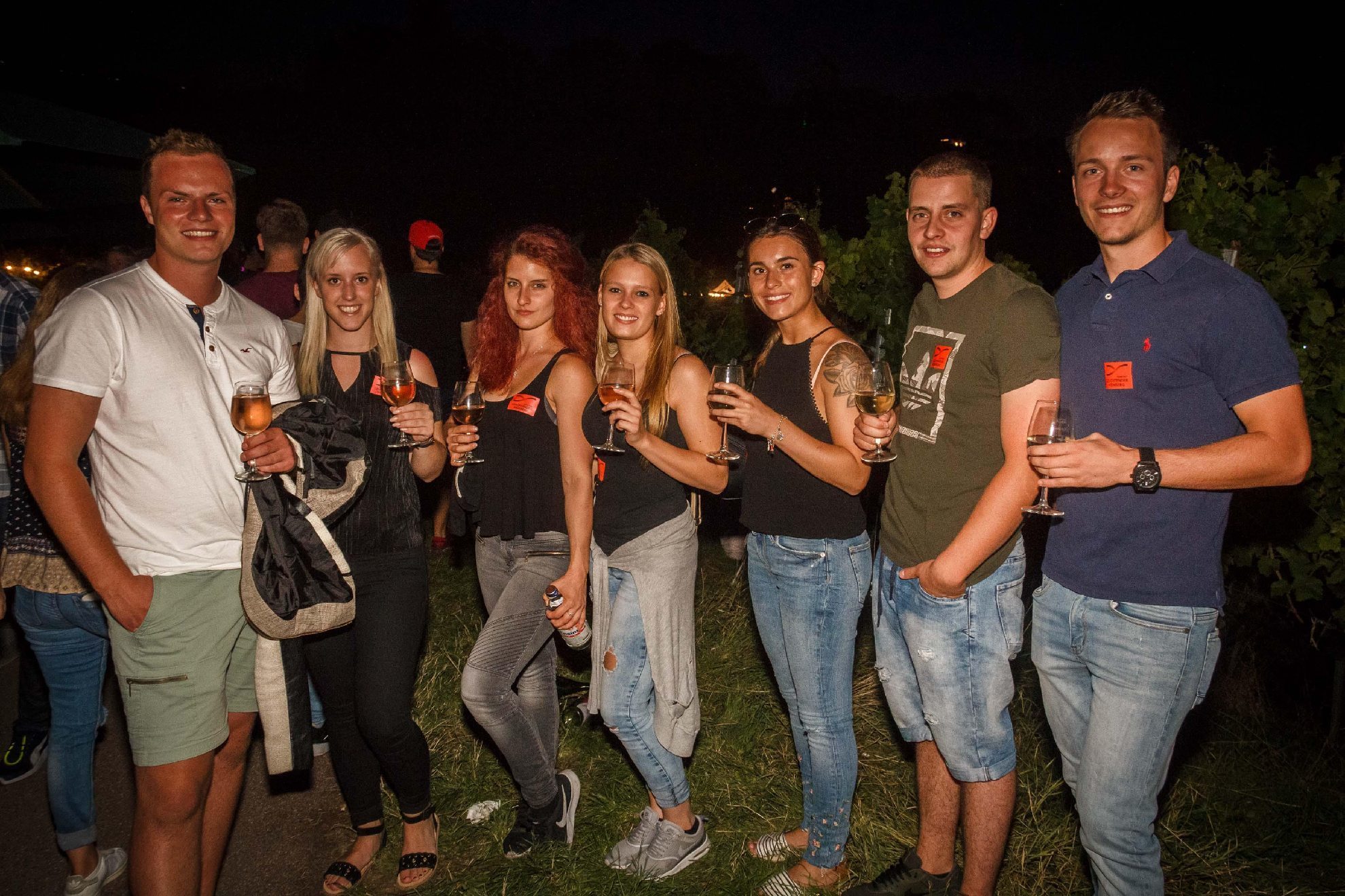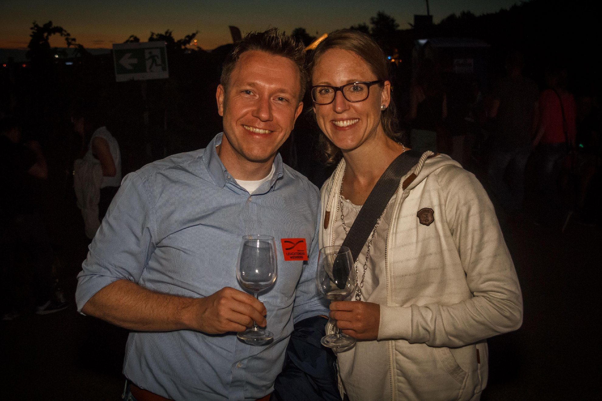 Am Eingang zur JAK-Station, wo vom Gedrängel vor der Bühne noch nichts zu ahnen ist, sitzt die junge Celine Kögel mit einem Partner ganz allein beim Kartenverkauf. Über Funk haben die zwei Helfer gerade erfahren, dass gut 8000 Leute unterwegs sind, mit Option auf mehr. Der „Leuchtende Weinberg“ scheint also wieder ein Magnet zu sein, ein Riesenevent, ein Erfolg für Natur und Kultur.