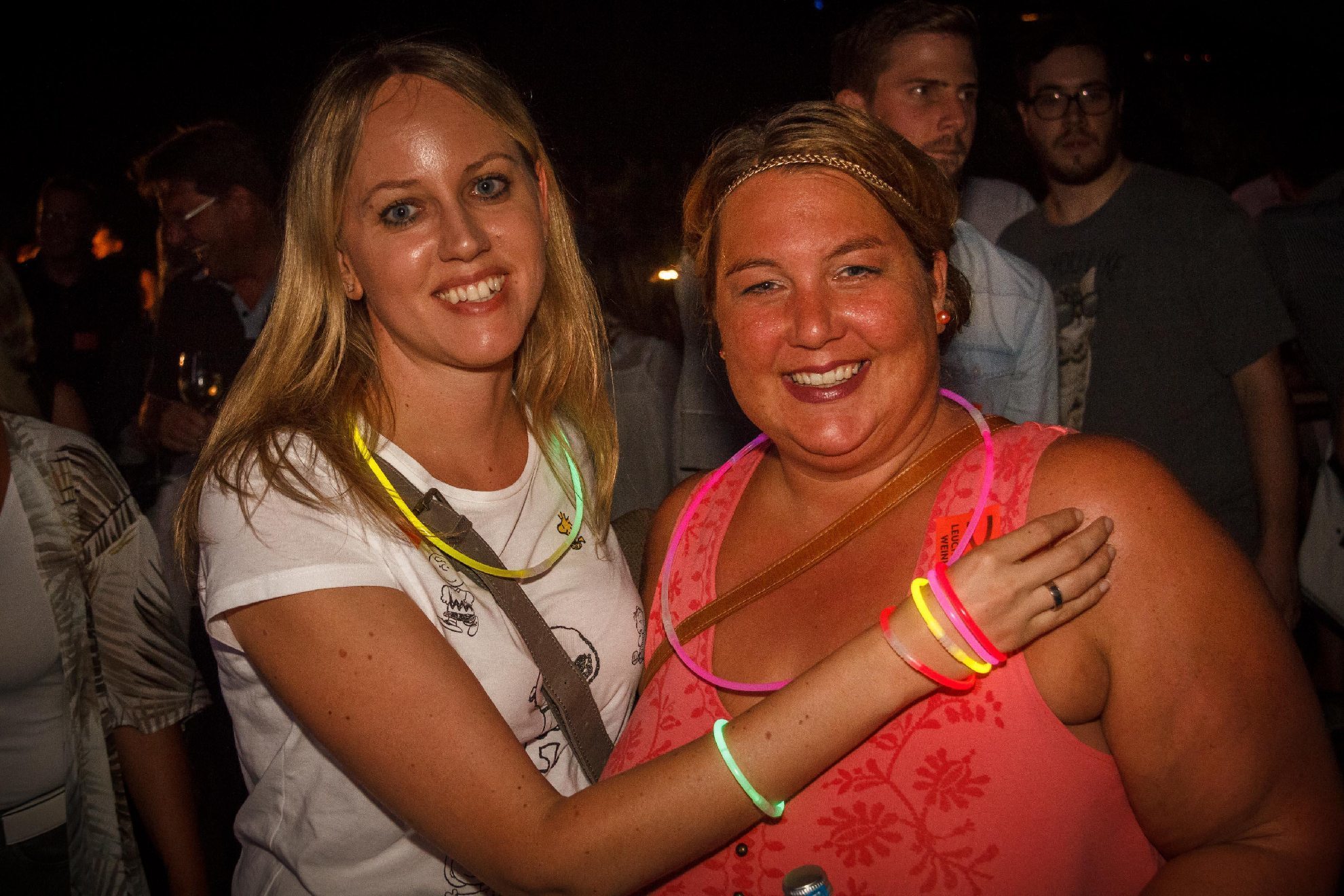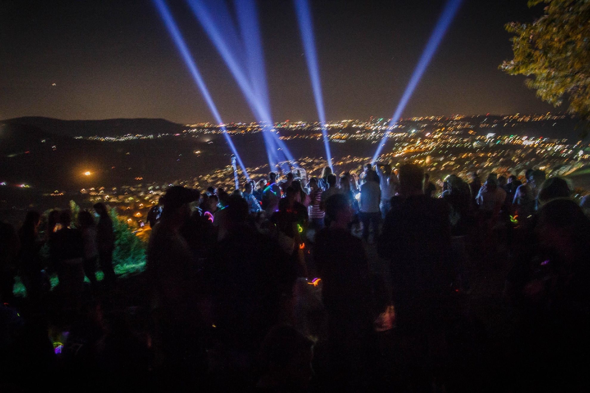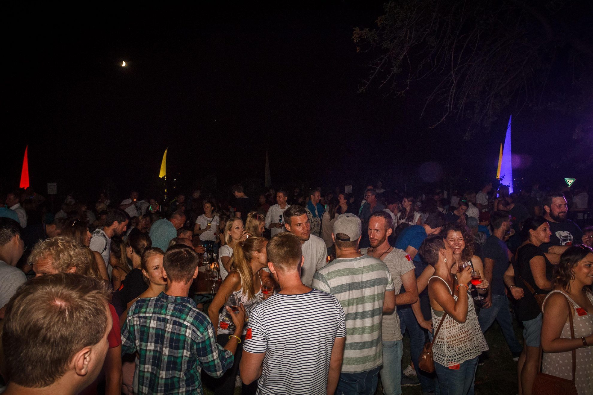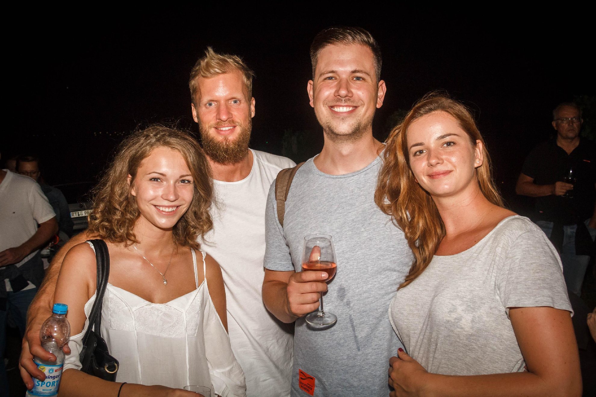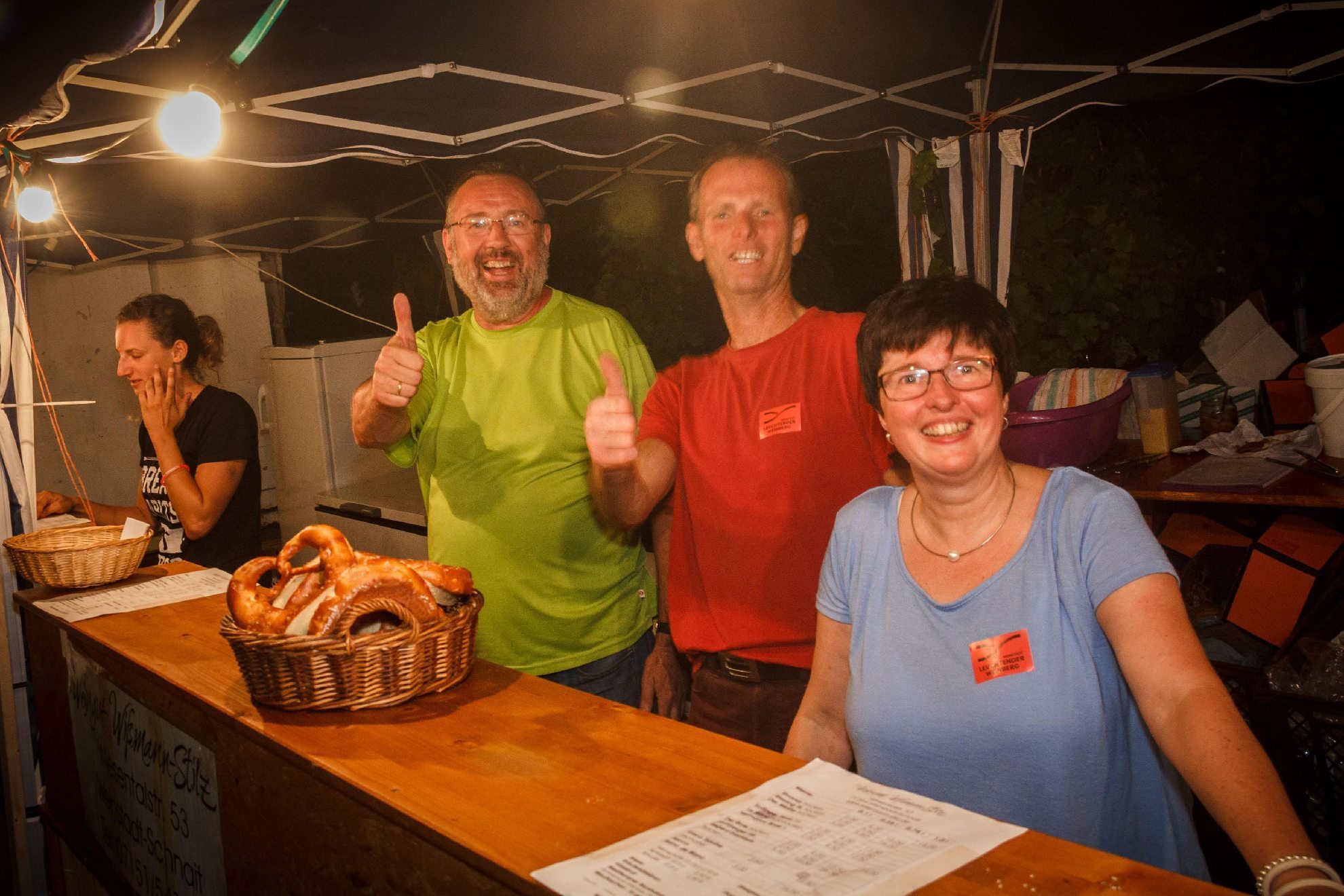 Am Eingang zur JAK-Station, wo vom Gedrängel vor der Bühne noch nichts zu ahnen ist, sitzt die junge Celine Kögel mit einem Partner ganz allein beim Kartenverkauf. Über Funk haben die zwei Helfer gerade erfahren, dass gut 8000 Leute unterwegs sind, mit Option auf mehr. Der „Leuchtende Weinberg“ scheint also wieder ein Magnet zu sein, ein Riesenevent, ein Erfolg für Natur und Kultur.