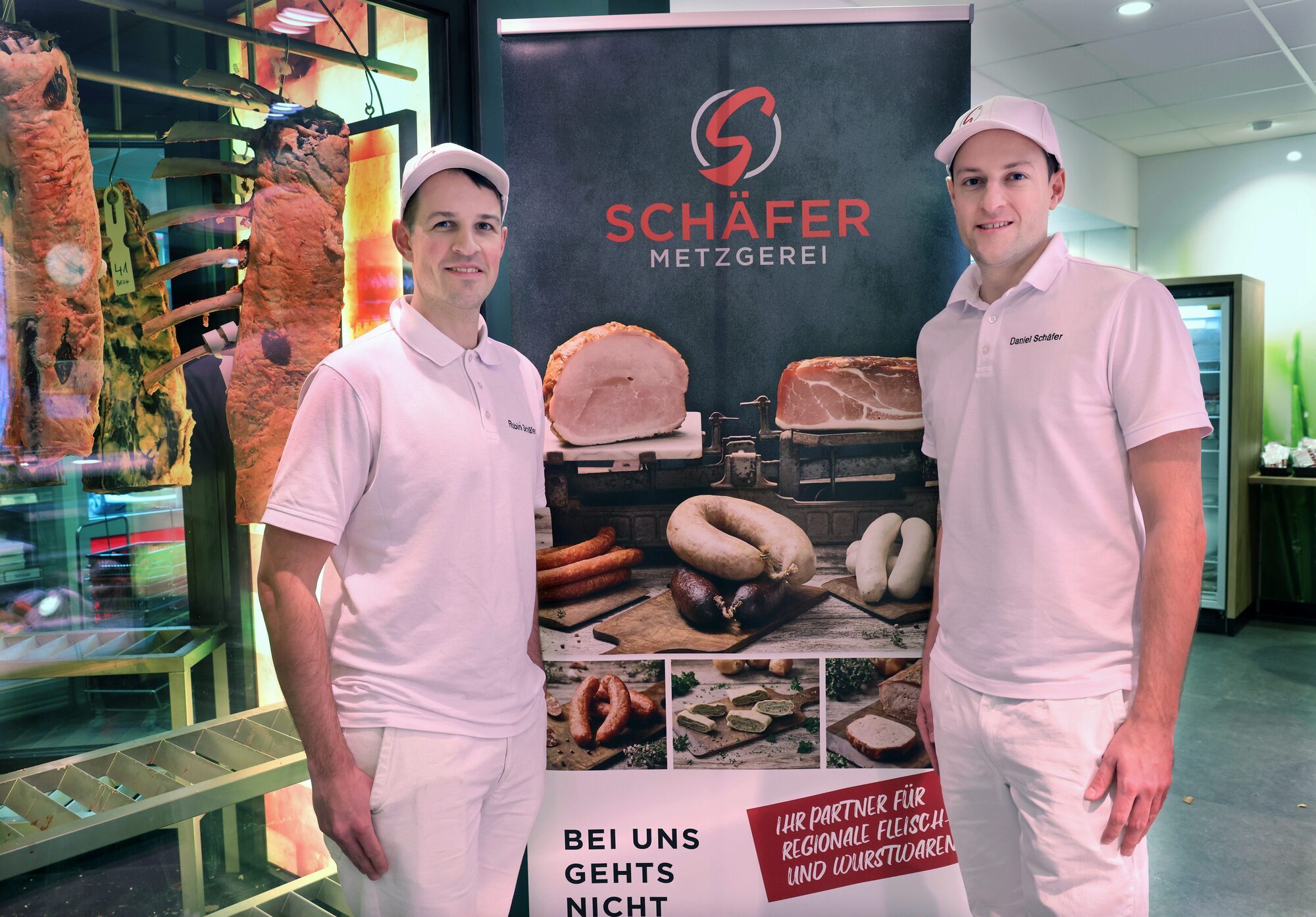 Die junge Generation übernimmt in der Metzgerei Schäfer aus Beutelsbach immer mehr Verantwortung. Robin Schäfer (31) ist bereits seit Oktober 2022 Teil der Geschäftsführung im rund 200 Mitarbeiter starken Familienbetrieb, auch sein jüngerer Bruder Daniel Schäfer unterstützt zunehmend im operativen Geschäft. Nun hat der 28-Jährige ebenfalls seinen Meister im Metzgerhandwerk gemacht. Für ihre Produkte hat die Metzgerei Schäfer im Oktober 2023 bei der Süffa, einer Fachmesse für die