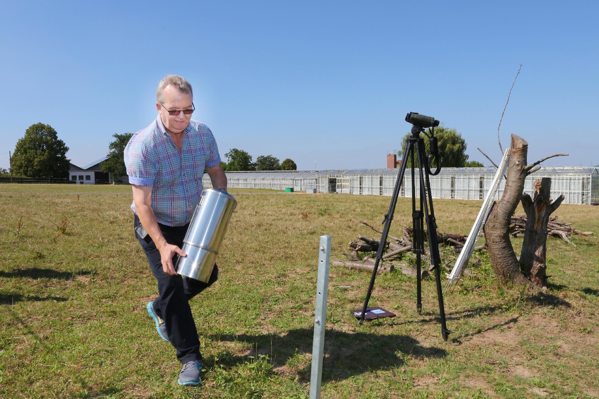Der Elektrozaun ist ausnahmsweise aus. Sonst könnte Günter Roß nicht so problemlos durch den Zaun schlüpfen und alle seine Materialen für die neue Wetterstation aus dem Auto auf Iris Haylers Grundstück schaffen. Dort, in einer Ecke der Pferdeweide, baut der Mann vom Deutschen Wetterdienst (DWD) die Messstation auf, eine von derzeit 110 manuell betriebenen in ganz Baden-Württemberg. Damit die Tiere nichts kaputt machen können, wird Iris Hayler die Station noch einzäunen. Sicher ist sicher. Schließlich sollen die Daten exakt sein, sogar genügend Abstand zu den Bäumen in der Umgebung ist entscheidend. Iris Hayler muss nun täglich den Niederschlag messen, im Winter kommt noch Schneefall hinzu. Selbst Tau und Reif sind relevant – denn auch die sorgen für eine geringfügige Wassermenge in der Messstation. DWD-Mann Günter Roß bittet seine neue ehrenamtliche Wetterbeobachterin Iris Hayler deshalb um Präzision: „Und wenn es nur 0,1 Liter hat, wird es auch notiert.“