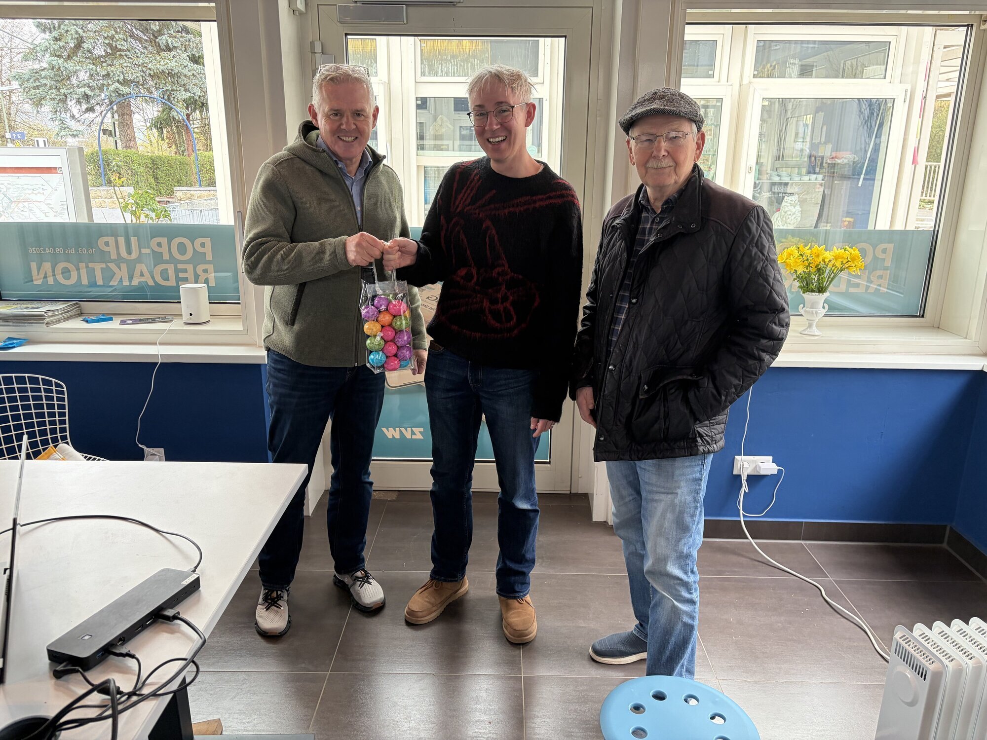 Weinstadt. Überraschungen sind wir in der Pop-up-Redaktion Beutelsbach fast schon gewohnt: Nachdem wir zu Beginn mit selbst gebackenen Brownies verwöhnt wurden, bekamen wir in Woche zwei Besuch vom Osterhasen in Gestalt von CDU-Stadtrat Volker Gaupp. Er schenkte uns eine Flaschenkühler-Tasche voller gefärbter Eier und einer Flasche Wein. Wir erzählen, was ein Uber-Eats-Mann wollte, welche neuen Hunde kamen und was es Gutes von der Transporterfalle gibt.
