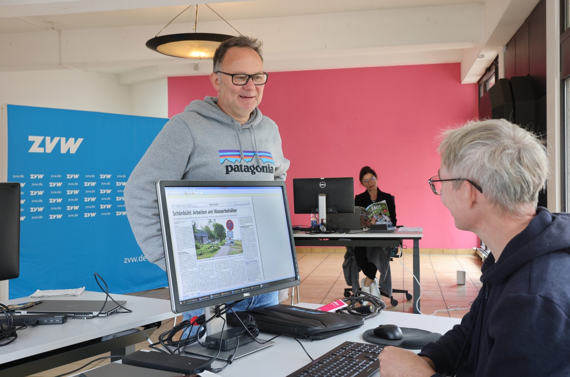 Wird das Internet funktionieren? Läuft bei 13 Grad Außentemperatur die Heizung? Und kommen auch Leute zu uns? All diese Fragen können wir jetzt mit Ja beantworten: Die Pop-up-Redaktion Weinstadt hat am Montag, 16. September 2024, im ehemaligen Blumenladen in der Strümpfelbacher Straße 6 in Endersbach ihren Betrieb aufgenommen. Um 8.50 Uhr hat die Firma Hess aus Waiblingen unsere neuen höhenverstellbaren Schreibtische geliefert. Unser Marketing hat weitere Accessoires mitgebracht, die unsere