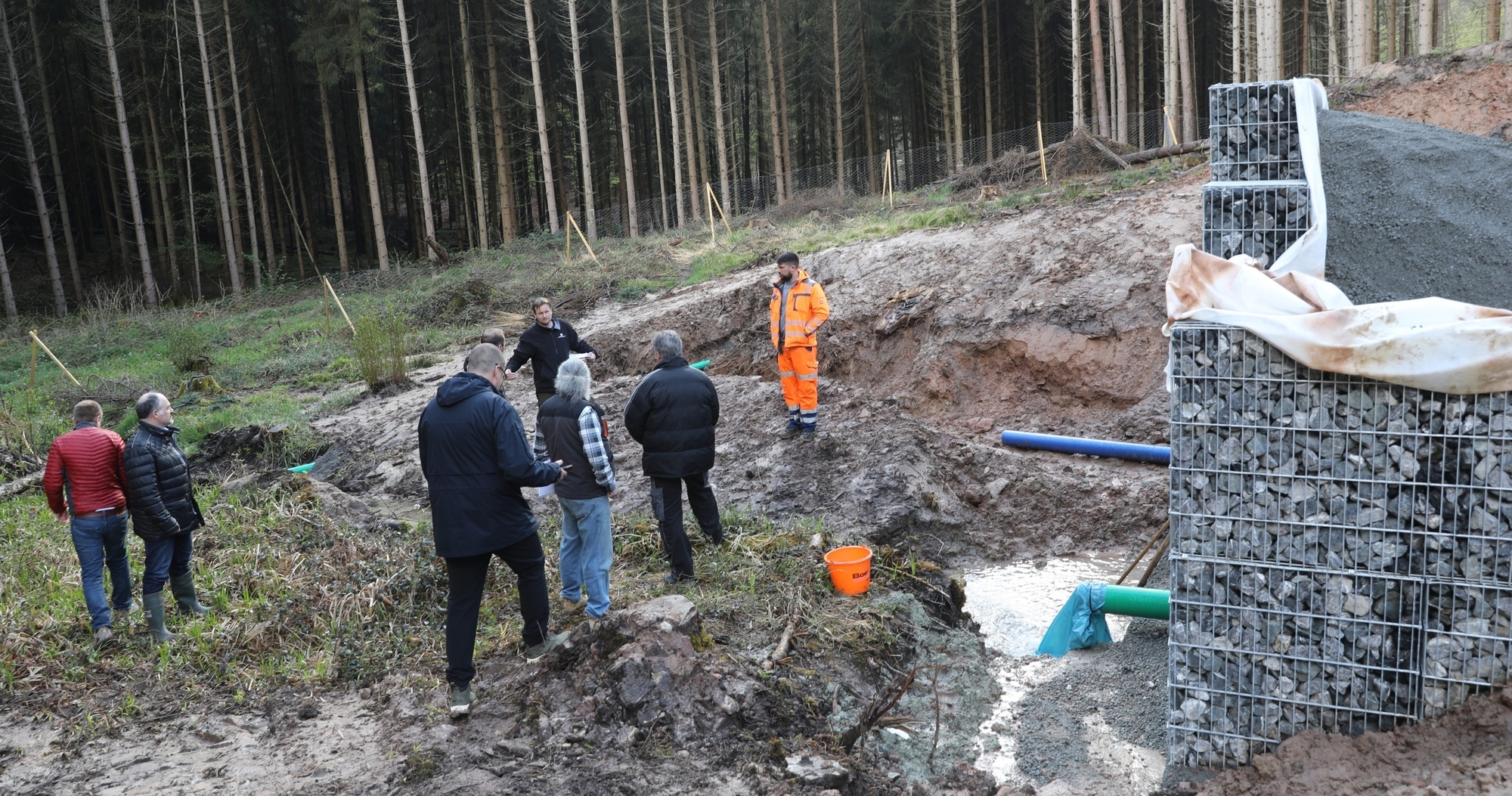 Zufriedene Gesichter trugen am Dienstagnachmittag sowohl der Weinstädter Oberbürgermeister Michael Scharmann wie auch sein Kernener Amtskollege Benedikt Paulowitsch zur Schau. Das, was sie bei der Begehung der Baustelle an der Offenbachquelle zwischen Baach und Baltmannsweiler gesehen haben, fand bei den Gemeindechefs ganz offensichtlich Gefallen.