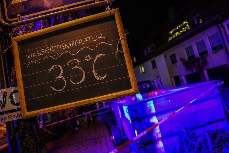 Ungewöhnliches Angebot: Ein mobiler Swimmingpool lud dazu ein, sich im Wasser aufzuwärmen.