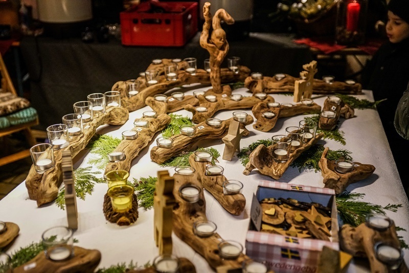 So präsentierte Helmut Strauß seine aus Rebschenkeln kunstvoll gefertigten Kerzenständer, während Mirjam Birkenmaier die von den Mädchen ihrer CVJM-Gruppe liebevoll hergestellten Tischläufer, Kirschkernkissen und Stoffsäckchen präsentierte. Am Stand nebenan fanden sich Back-, Servier- und Schneidbretter. Am Stand der „Apis“ wiederum gab es nicht nur Bücher und Kalender, sondern Margarete Romberg und Dominique Selz stellten auch die neue CD vor, die sie als „Veeh-Harfen-Ensemble Remstal“ aufgenommen haben.