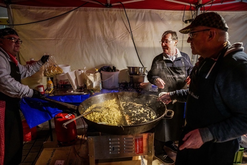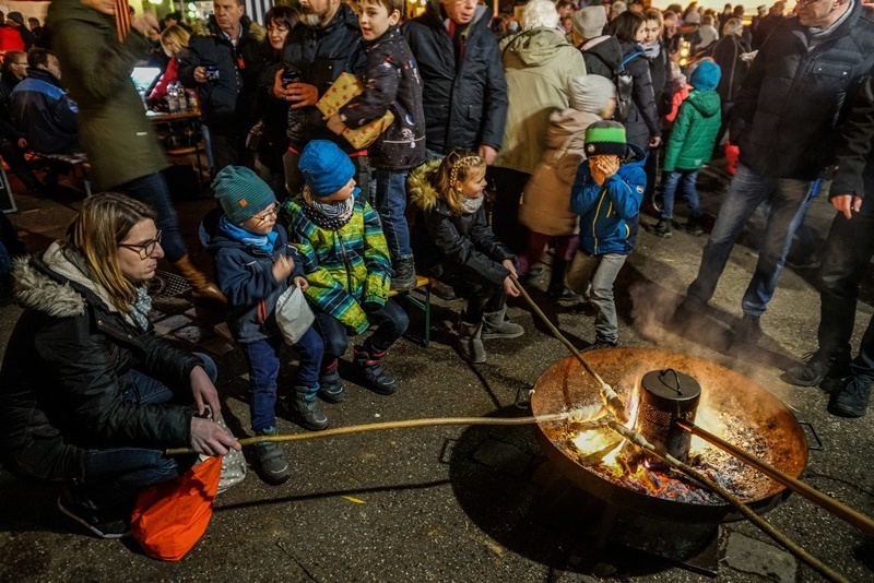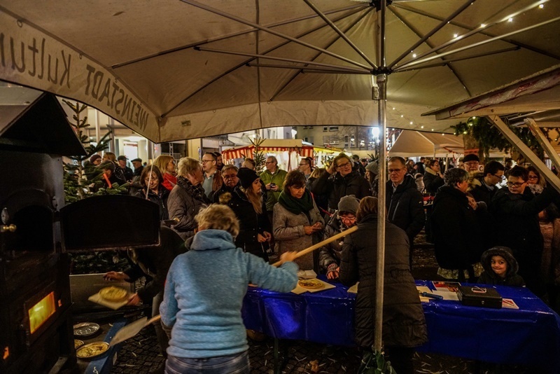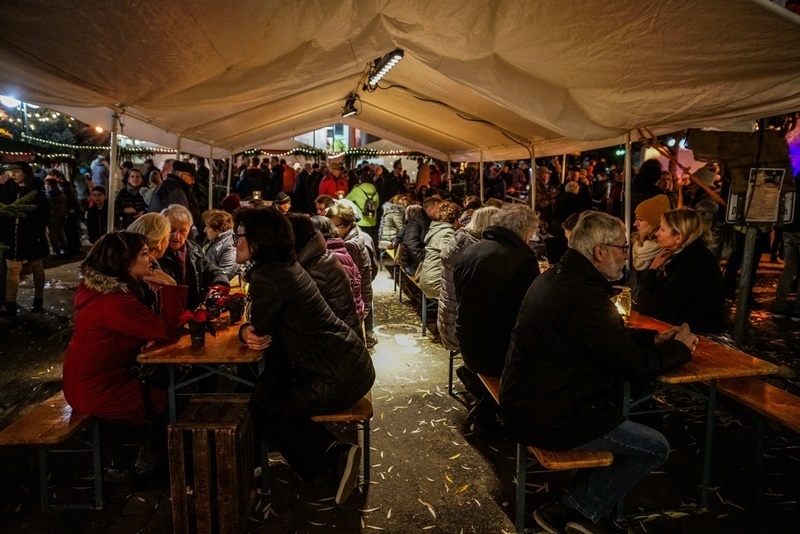 Volker Rosins Gedicht vom Bratapfel war dann für so manchen Festbesucher das Stichwort, sich wieder ganz den leiblichen Genüssen zu widmen: den Leckerbissen, deren Duft verführerisch über den Marktplatz zog und Getränken wie Glühwein, Apfelschnaps oder Hot Aperol.