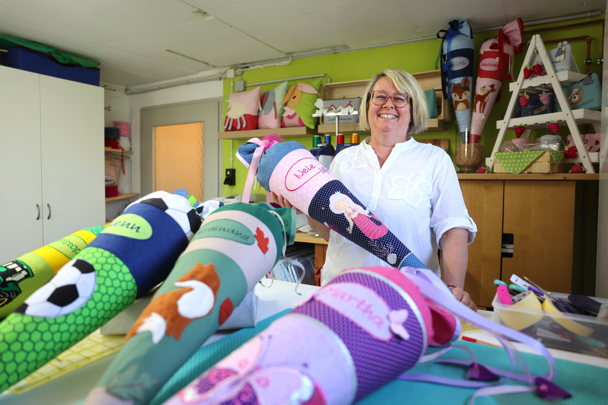 Weinstadt. Ihre Schultüten stellt Michi Dlapal (53) in einem Hobbyraum im Keller ihres Hauses in Endersbach her. Sie näht sie aus Baumwoll-Webware und verziert sie bei Bedarf mit Borten oder Glitzer. Letzteres ist vor allem bei Schultüten für Mädchen beliebt - bei den Jungs sind es Fußball-Motive. Wer bei Michi Dlapal bestellt, wohnt in der Regel im Remstal und kommt meist persönlich vorbei. „Ich habe auch keinen Online-Shop.“