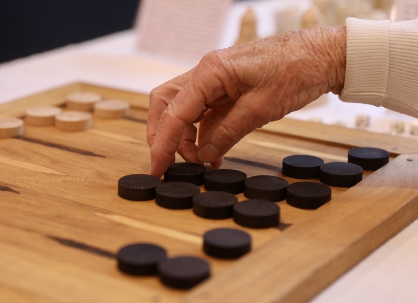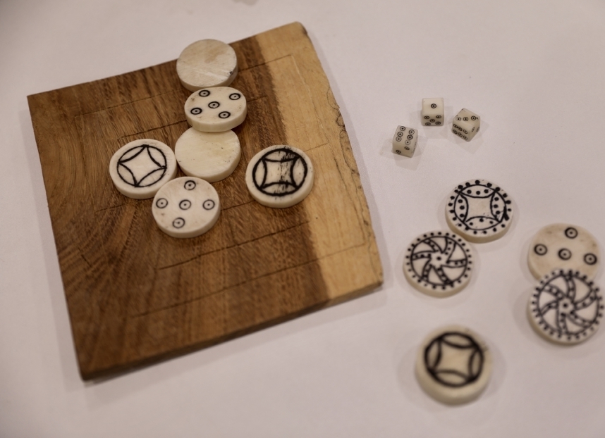 Eine Handvoll kleiner Knochen liegt neben den Mühle-Brettern auf einem Tisch. Es sind Sprunggelenke vom Schaf, im 13. Jahrhundert ein beliebtes Kinderspielzeug. Jens Nägele zeigt einem Jungen, wie er die Steine auf dem Handrücken balancieren kann und dann durch schnelles Hochwerfen und das Umdrehen der Hand versuchen kann, alle Knochen wieder aufzufangen. „Der Rekord liegt bei 15 Knochen auf einmal“, erinnert sich Nägele an einen Besucher. „Der muss aber große Hände gehabt haben“, staunt der Junge und versucht sich erst mal an nur drei Knochen – schwierig genug immerhin. Die Mutter hat im Gemeindeblättle von der Ausstellung gelesen und Mann und Sohn kurzerhand mitgenommen. „Mal weg vom Handy“, erklärt sie mit einem Seitenblick auf ihren Sohn. Dieser scheint ganz gut unterhalten. Ob die Ausstellung besser ist als erwartet? „Ja“, gibt er zu und wird dabei sogar ein bisschen rot.