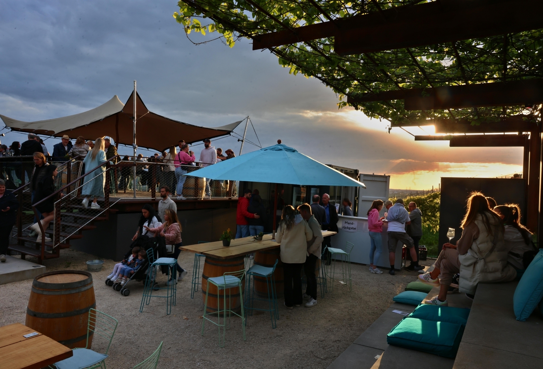 Weine, Speisen, Musik – und das alles mit Panorama-Blick: Auf der Aussichtsplattform Luitenbächer Höhe in den Weinbergen in Großheppach lockt die Sunset Lounge seit Jahren Zehntausende von Besuchern an. Wengerter aus Weinstadt bewirten dort seit dem Gartenschaujahr 2019 – und auch 2024 geht die Erfolgsgeschichte weiter.