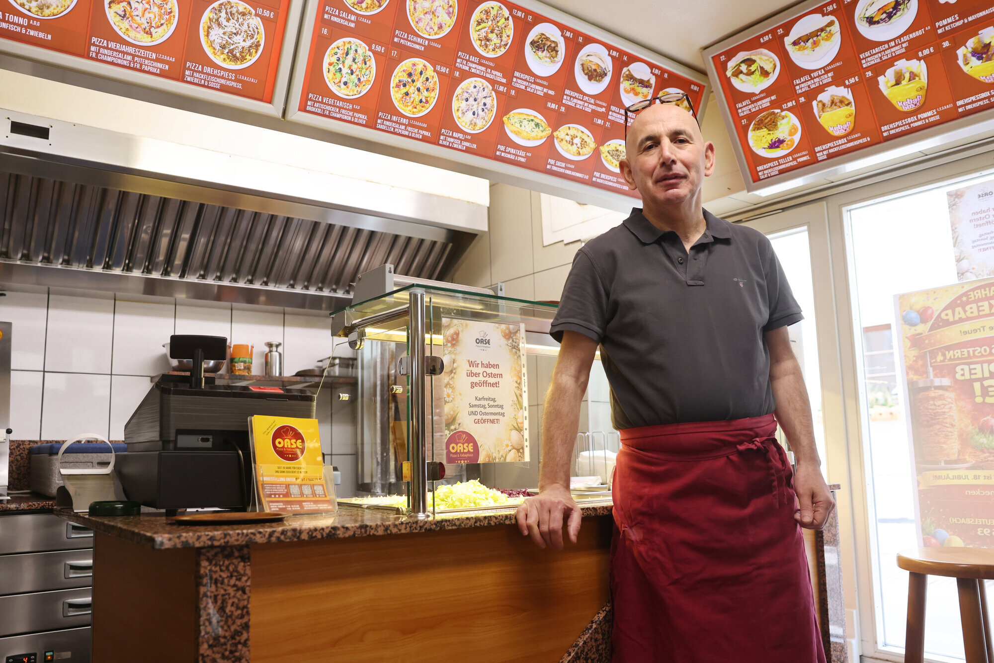 Weinstadt. Seit Juli 2025 musste Ismail Akbas mit seinem Pizza- und Kebabhaus Oase in Beutelsbach mit einer Baustelle direkt vorm Geschäft klarkommen. Der Umsatz brach ein - seine rettende Idee war der „Baustellen-Döner“ für fünf Euro. Kurz vor Ostern 2026 ist die Baustelle überstanden - doch Ismail Akbas macht mit dem niedrigen Döner-Preis eine Weile weiter. Wie lange der Döner noch fünf Euro kostet, wie schwer das Geschäft geworden ist und wo er Kraft tankt, erzählt er uns