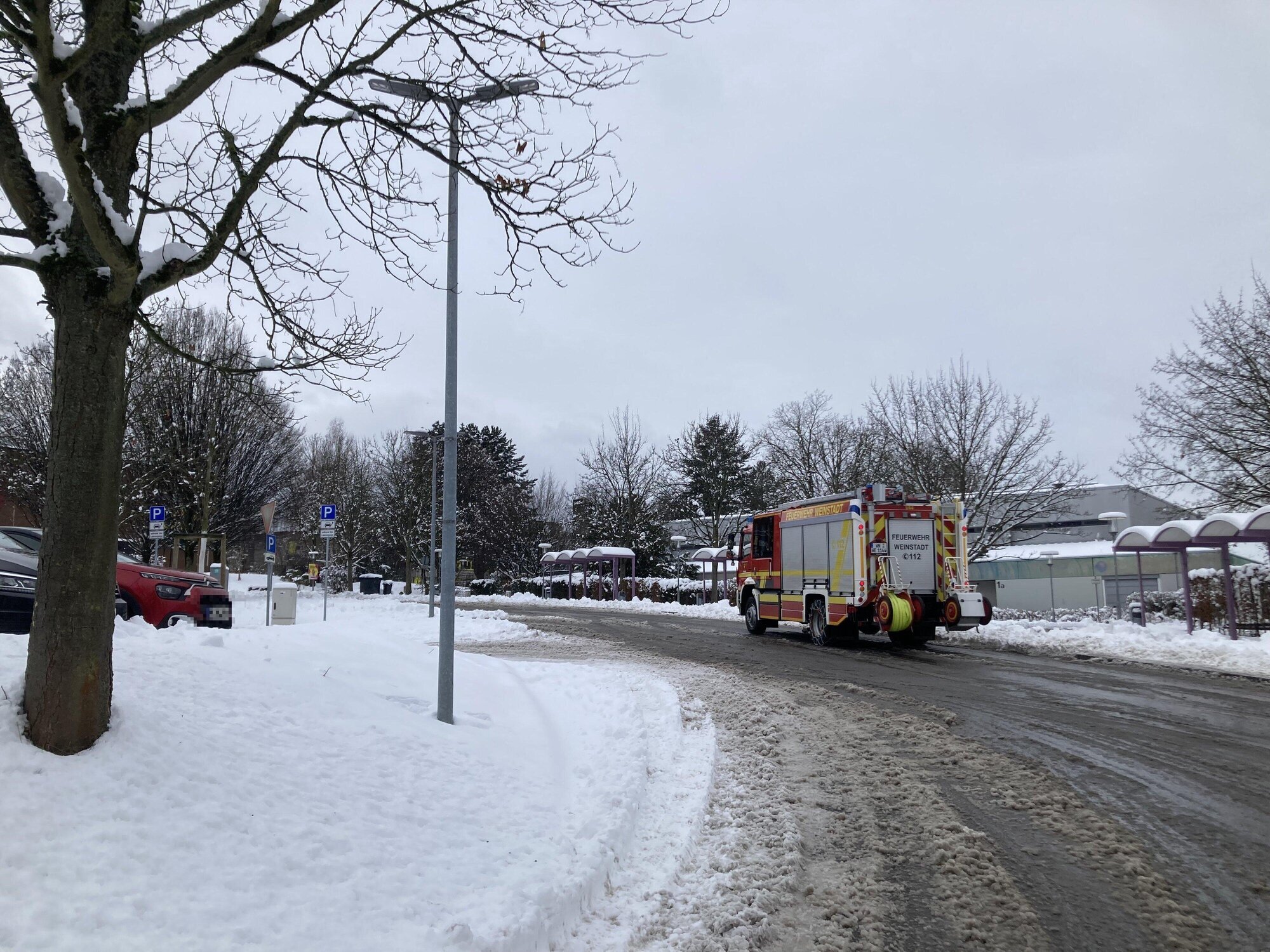 Weinstadt. Der Schneefall in der Nacht auf Montag, 26. Januar 2026, hat auch für die Schüler am Bildungszentrum Weinstadt Folgen gehabt. So konnten die Sporthallen nicht benutzt werden - und das wiederum hatte Auswirkungen auf den Sportunterricht der Schüler, wie etwa am Remstal-Gymnasium. Dieser fiel letztlich aus. Wir waren aufgrund eines Termins am Montagvormittag selbst in Weinstadt unterwegs und wurden Zeuge davon, wie ein Fahrzeug der Feuerwehr Weinstadt an der