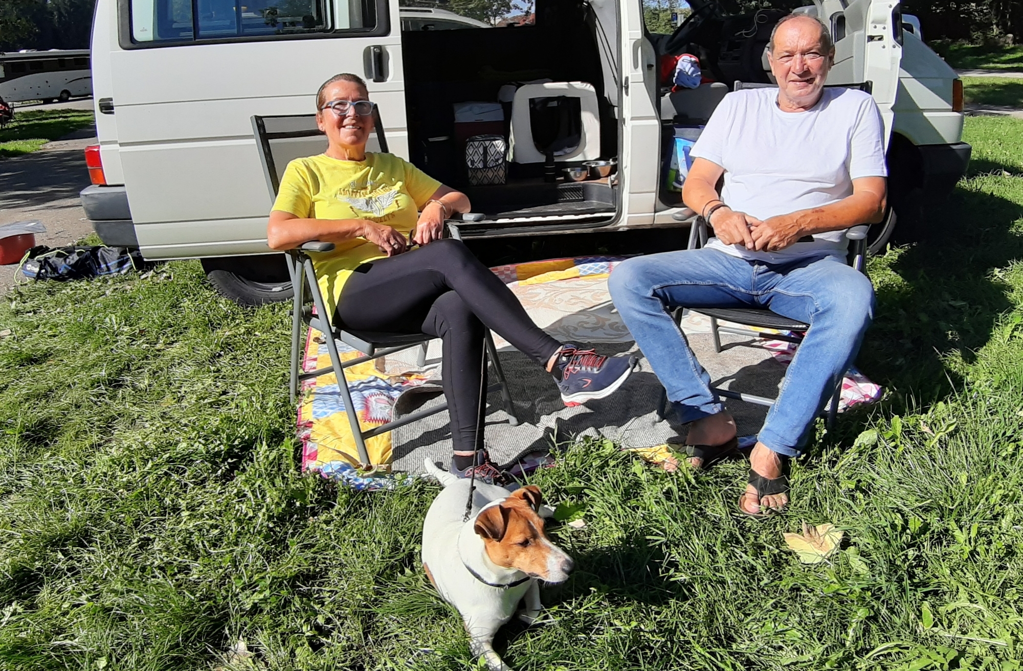 Noch ist es kühl am Aichstrutsee in Welzheim. Doch die Sonne am strahlend blauen Himmel lässt die aufkommende Wärme des Spätsommertags bereits erahnen. Hagebutten leuchten nahe der Parkautomaten und gemahnen an den nahen Herbst. Nun, am späten Morgen, bevor die Badegäste an den See strömen, ist der Parkplatz leer. Still ist es auf dem Wohnmobil-Stellplatz unterhalb des Sees. Nichts lenkt ab vom Blick auf Wiesen und Wald. Noch gehören der See und das Panorama denen, die die Nacht hier