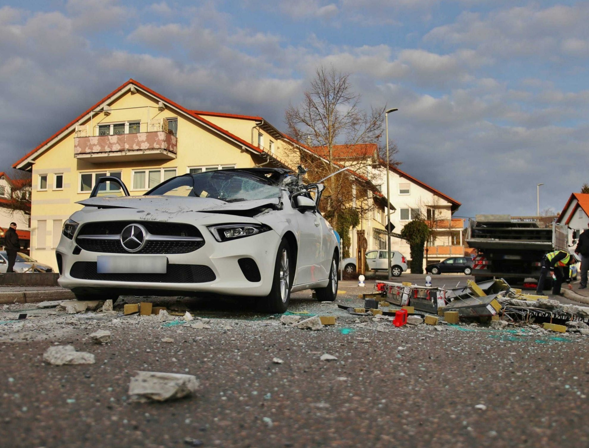 Ein 59-jähriger Lkw-Fahrer hatte am Dienstagmorgen gegen 7.45 Uhr die Hauptstraße in Althütte Richtung Ebnistraße befahren. In einer leichten Rechtskurve löste sich das circa eine Tonne schwere Betonteil – „und fiel auf das Autodach einer entgegenkommenden Mercedes-A-Klasse“, wie es im Bericht der Polizei heißt. In diesem Wagen saß Reinhold Sczuka.