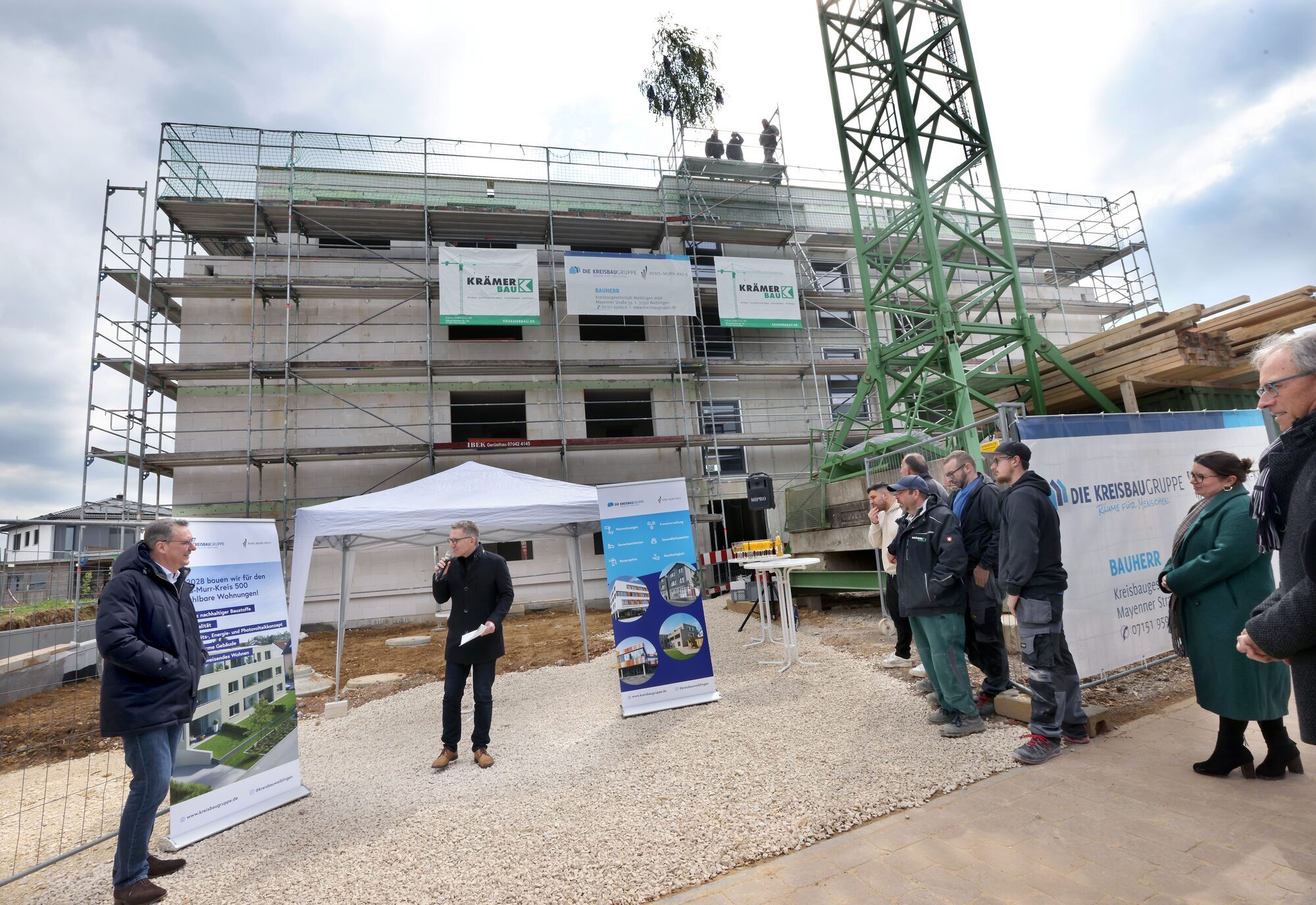 Der Rems-Murr-Kreis treibt sein Ziel, bis 2028 insgesamt 500 bezahlbare Wohnungen zu schaffen, weiter voran. Auch wenn die Situation am Bau gerade nicht einfach ist: „Wir machen das trotzdem“, sagte Landrat Dr. Richard Sigel bei einem Richtfest in Welzheim am Dienstagnachmittag.