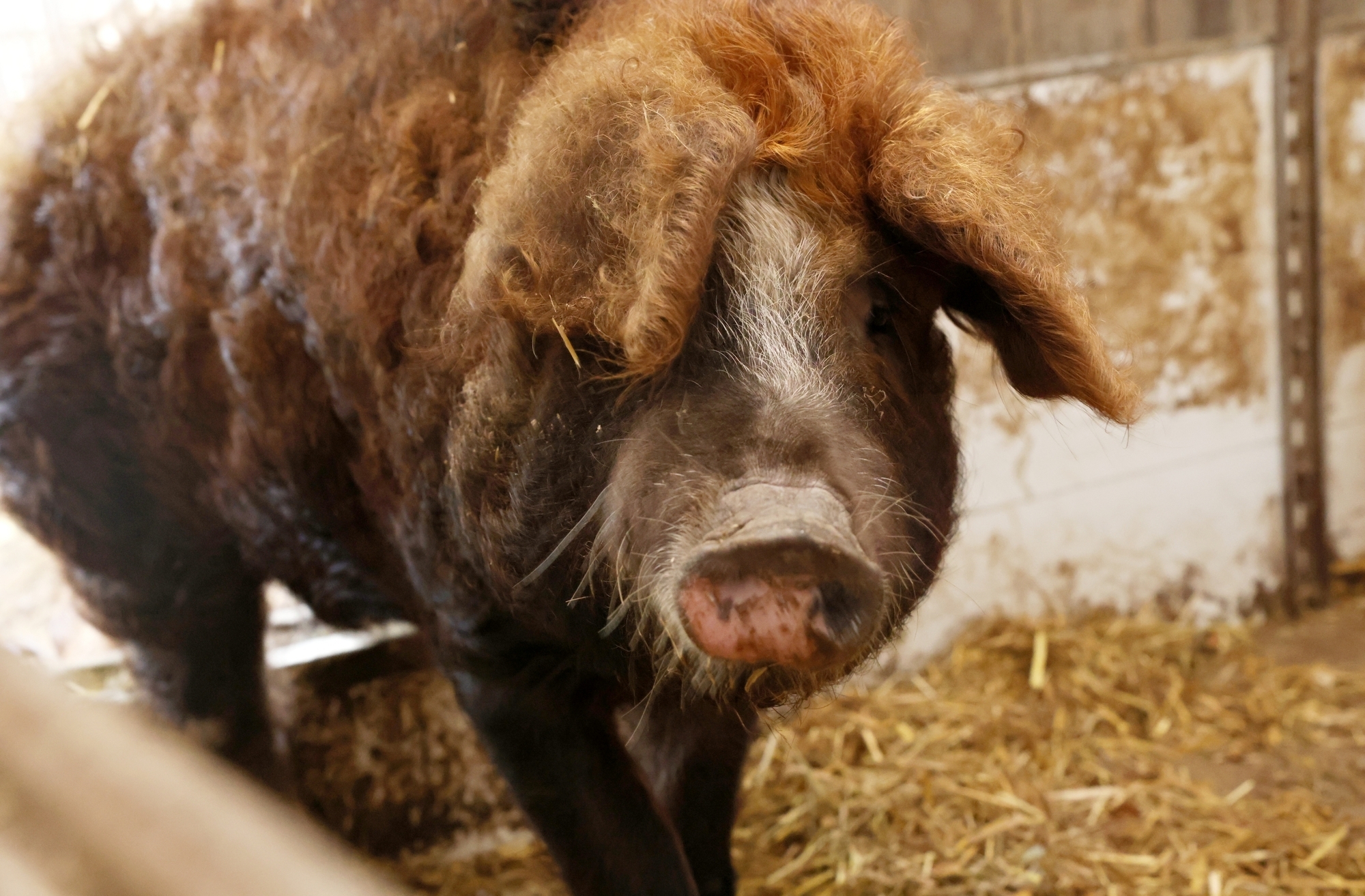 Die Mangalitza-Wollschweine des Biohofs Vogel in Welzheim eignen sich jederzeit als Vorbild für Plüschtiere mit ihren wachen Äuglein und dem lockigen Fell: Sie sind herzig anzusehen, doch man kommt für gewöhnlich nicht häufig in den Genuss ihres Anblicks. Die ungarische Schweinerasse, eine alte Nutztierrasse, ist vom Aussterben bedroht. Auf dem Biohof Vogel in Welzheim-Eberhardsweiler züchten Gerda und Gerhard Vogel die Tiere.