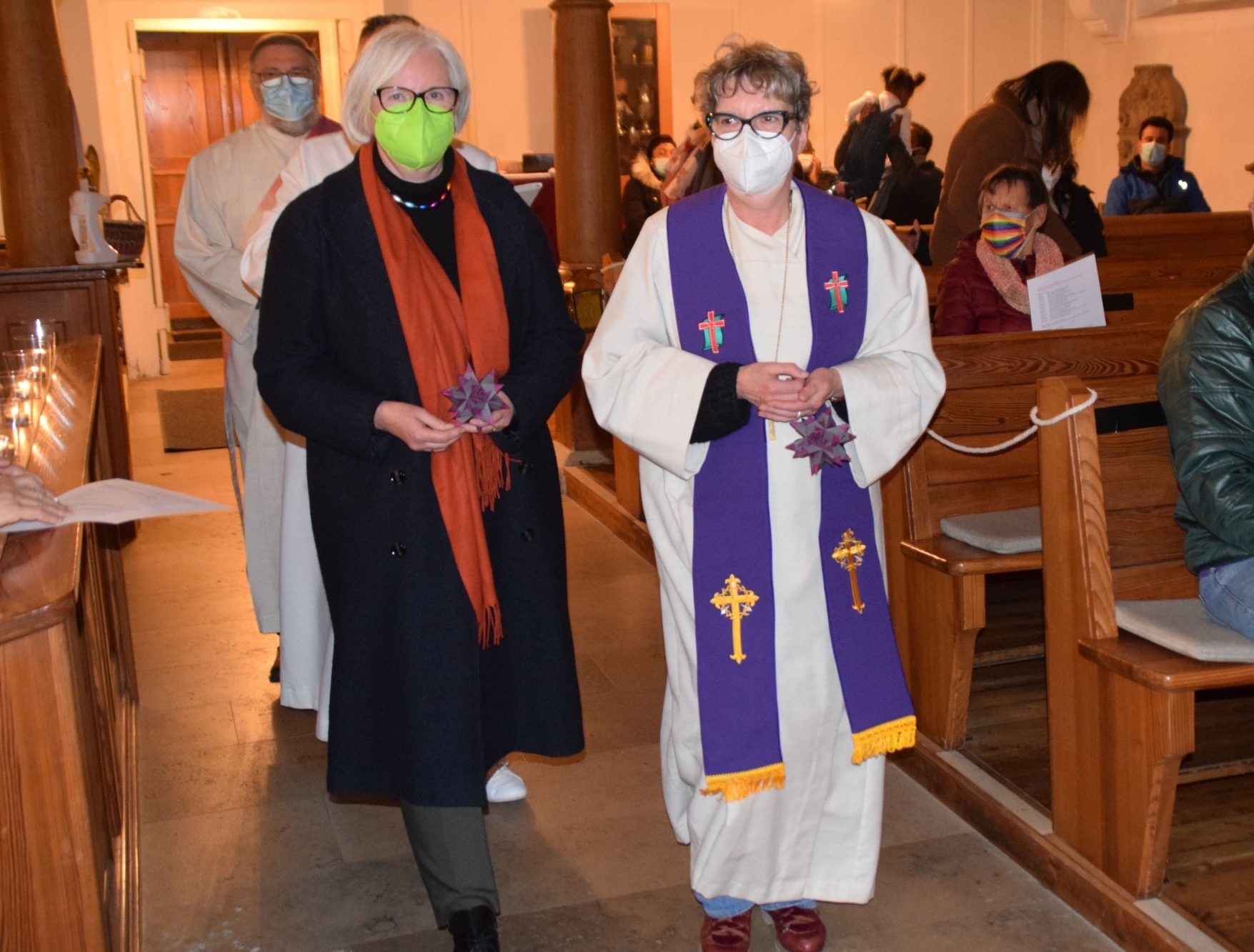 Brot und das Gold des Kerzenscheins waren Motive der Adventsfeier des Friedensgebets in der Welzheimer Sankt-Gallus-Kirche. Schon vor dem Gotteshaus führten Lichter in das Innerste der Kirche. Die Bankreihen waren ebenfalls mit Kerzen geschmückt. Alles erstrahlte