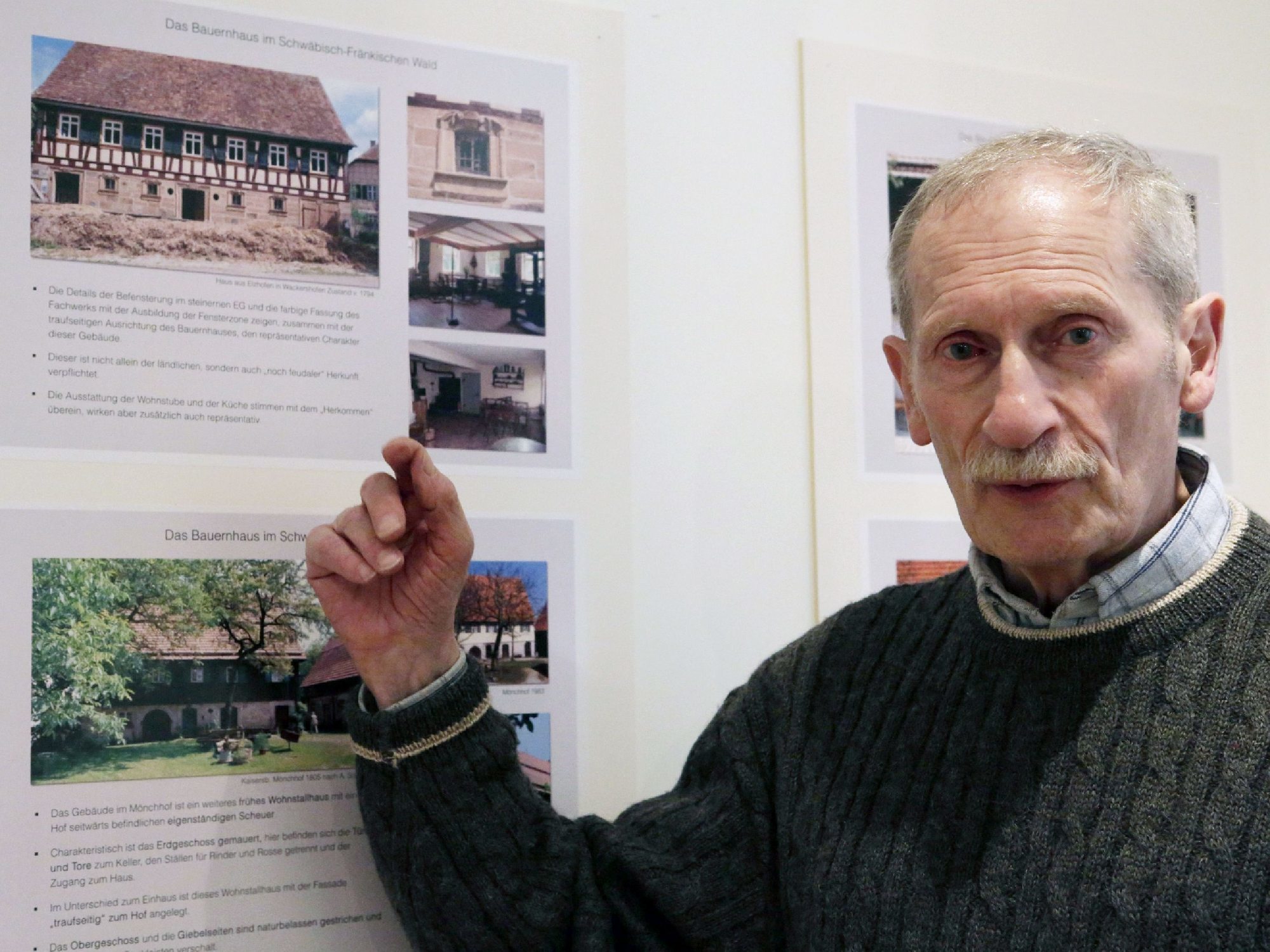 Bereits Ende 2014 war eine Ausstellung über das Bauernhaus in Backnang zu sehen. Die Präsentation wurde nun für die Welzheimer Sonderausstellung aufgearbeitet und ergänzt. Dr. Peter Hövelborn, mittlerweile 74 Jahre alt, hat sich als Sanierungsexperte in der Region Stuttgart einen Namen gemacht. 20 Jahre lang war er hauptamtlicher Sanierungsexperte bei der Stadt Esslingen am Neckar. Seit dem Jahr 2005 ist der Fachmann im Ruhestand. Der „alte Herr“ ist noch heute bei den Stadtführern in Esslingen bekannt und gefragt.