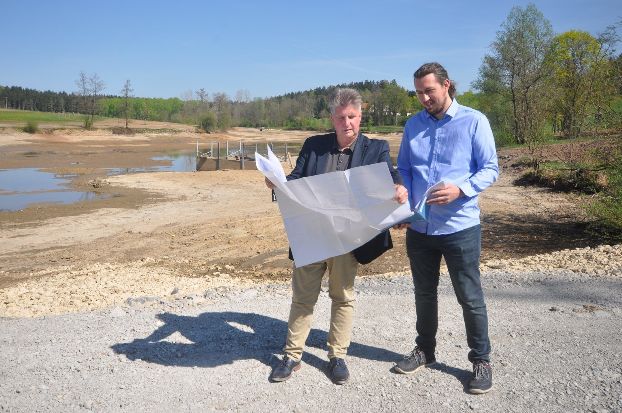 Ende Mai bis Anfang Juni werde der See wieder voll sein. Warum ist er überhaupt leer? Vorgesehen war, rund 15 000 Kubikmeter Schlamm zu entfernen, der sich in den vergangenen Jahren am Boden des Sees eingelagert hatte und die Aufnahmekapazität des Sees beeinträchtigte. Doch es musste lediglich die Hälfte abgetragen werden, was die Maßnahme insgesamt günstiger macht.