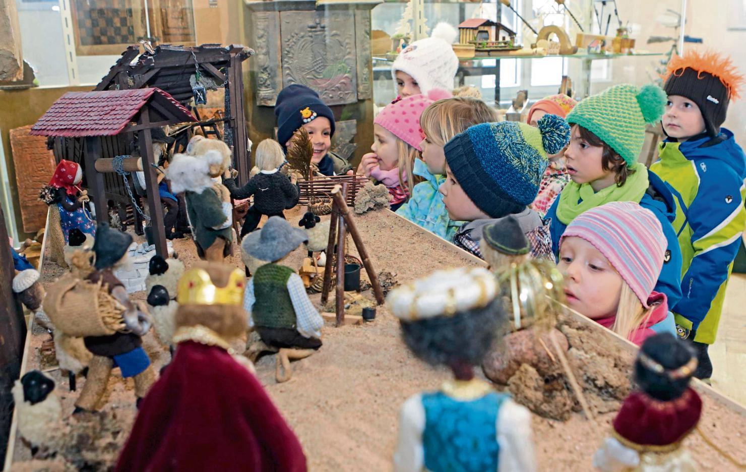 „Zur Krippe her kommet“ heißt die Sonderausstellung. Die Vielfalt der Krippen, von traditionell bis modern, ist zu sehen. Alte Papierkrippen, Krippen als Weihnachtspyramide, Zinnfiguren, Margarine-Figürchen, eine Playmobil-Krippe sowie zwei Krippen, die mit Ankersteinbaukästen erbaut und mit Ausschneidefiguren dekoriert sind.