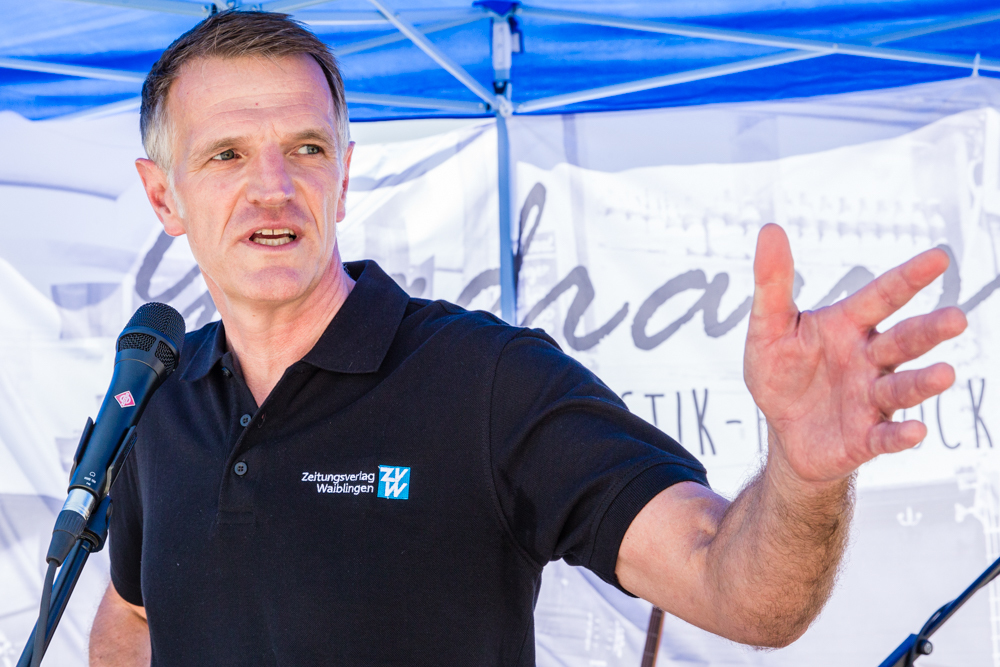 Das ließ der Schultes in seiner Rede nicht unerwähnt. Er begrüßte es zunächst sehr, dass der Zeitungsverlag Waiblingen auf dem neuen Marktplatz das Jubiläumsfest der Welzheimer Zeitung feiert und nicht wie viele andere Organisationen im Schlossgarten oder bei den Schulen. „Man muss sich nicht hinter dem Schloss verstecken, wir haben den neuen Marktplatz extra für solche Feste hergerichtet.“ Auch beim alljährlichen Straßenfest sei leider eine Verlagerung in Richtung Schlossgarten und Schulen zu beobachten. Die Landfrauen sind laut Segan bei so einem Fest eine sehr gute Truppe. Er erinnerte aber daran, dass die Männer bereits morgens beim Aufbau tatkräftig ihren Frauen geholfen haben. „Hinter einer starken Frau steht ein starker Mann.“