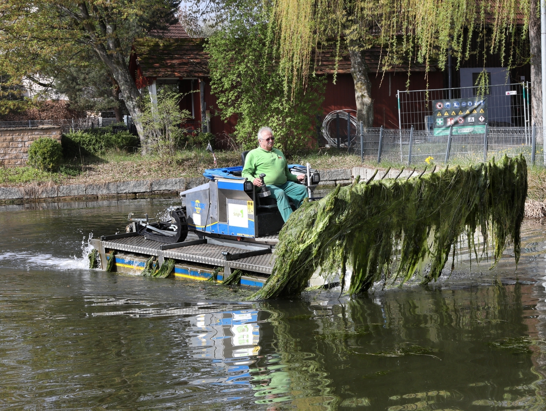 Des Rätsels Lösung kennt Hans-Dieter Aschbacher, der Fahrer des Amphibien-Geräteträgers, wie das Mähboot offiziell heißt. Der Mitarbeiter einer Firma