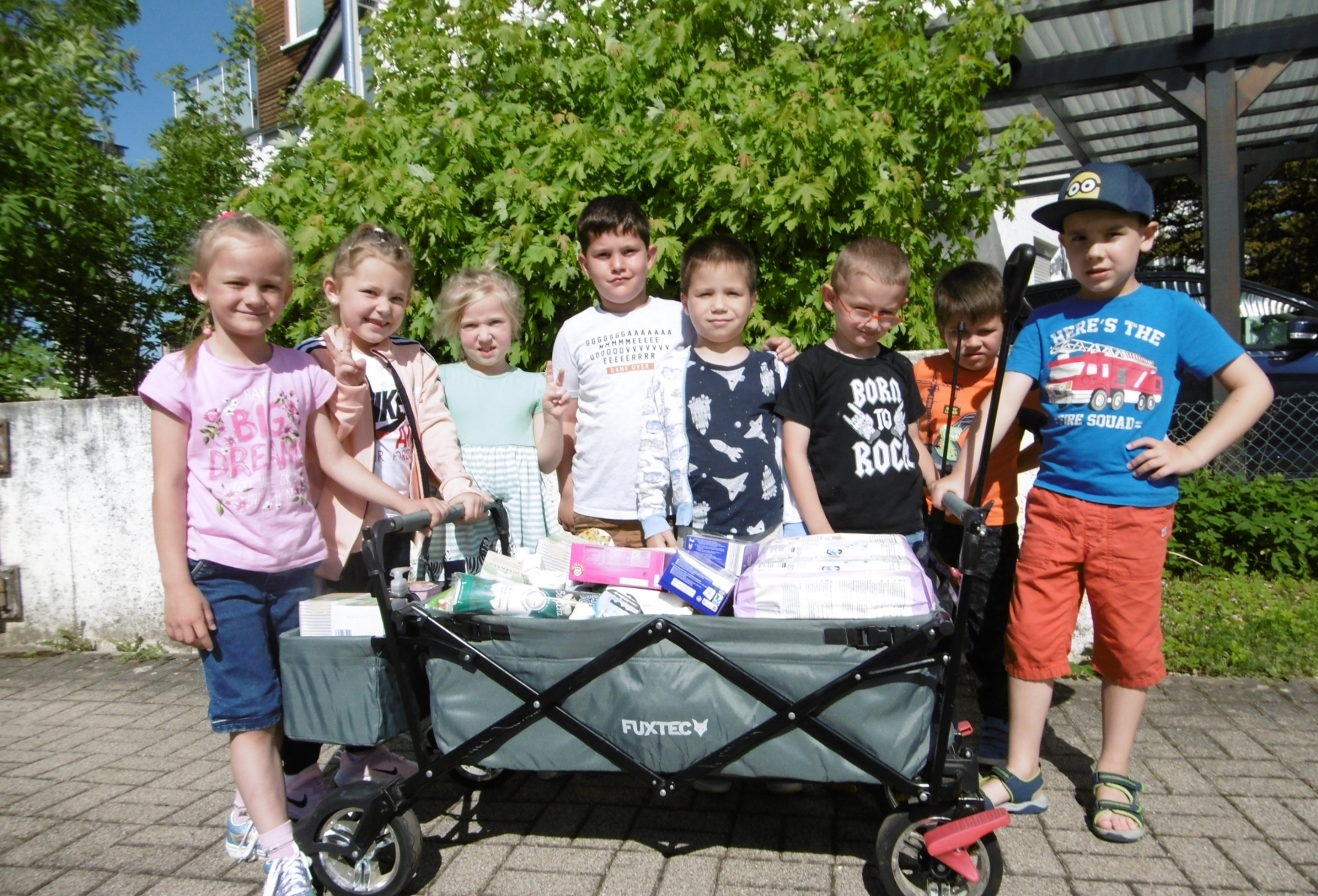 Die Erzieherinnen des katholischen Kindergartens Philipp Neri hatten in einer gemeinsamen Teamsitzung über das Thema Flüchtlinge aus der Ukraine und Menschen mit weniger Geld in Welzheim gesprochen und die Entscheidung getroffen, mit den Kindern dieses Thema aufzugreifen. Ein paar Tage später war es dann so weit.