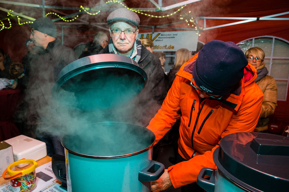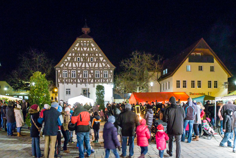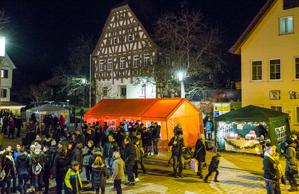 Der Lichtermarkt begeisterte neben der Atmosphäre und der Kulinarik auch mit seinem Programm. Für alle Generationen wurde an den rund 50 Ständen etwas bereitgehalten. Echte Hingucker waren Alfdorfer Frauen aus dem Bauchtanzkurs der Volkshochschule bei ihrem Auftritt. Bereits als sie sich im Rathaus für ihren Auftritt umzogen, hatten viele Besucher sie im Blick. In ihren weißen, wallenden Kostümen, ausgestattet mit Lichtern, sahen sie aus wie Wintergöttinnen.