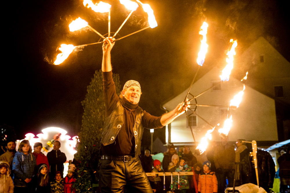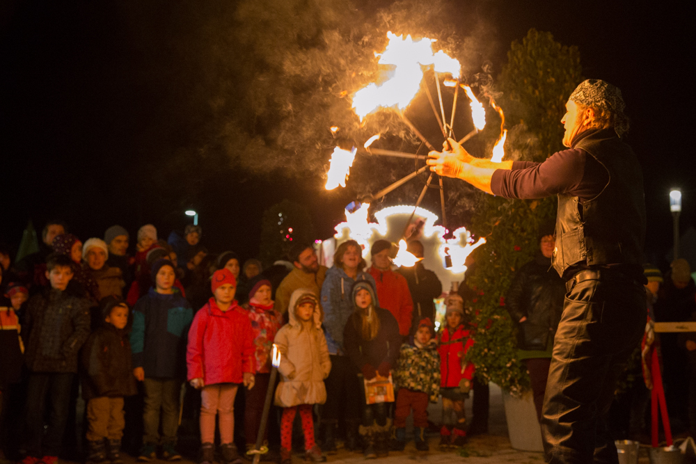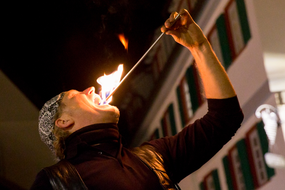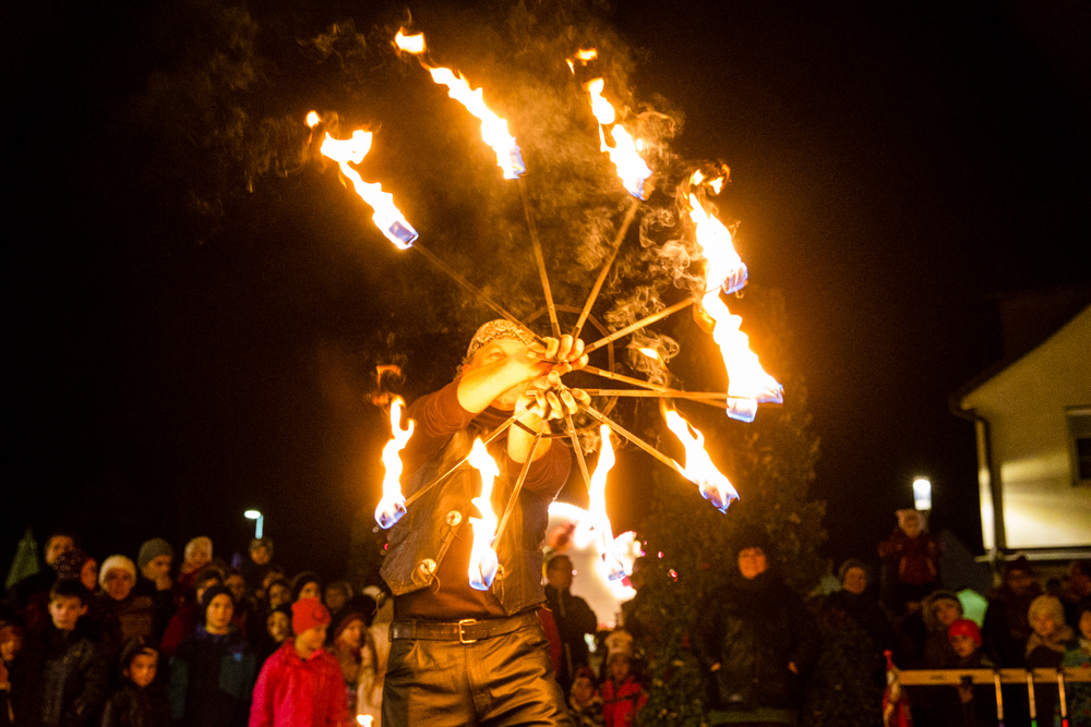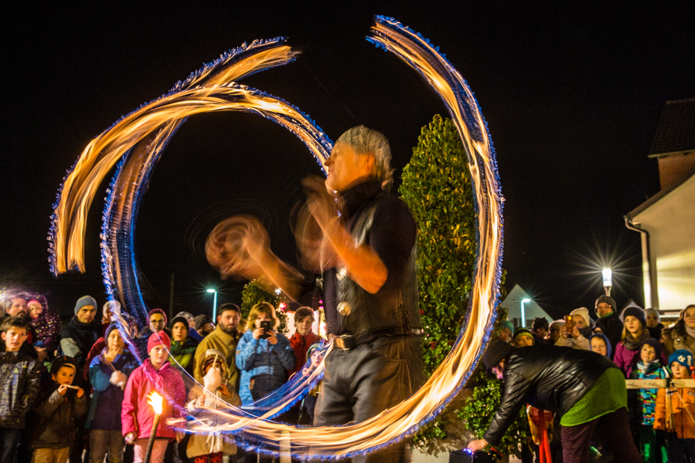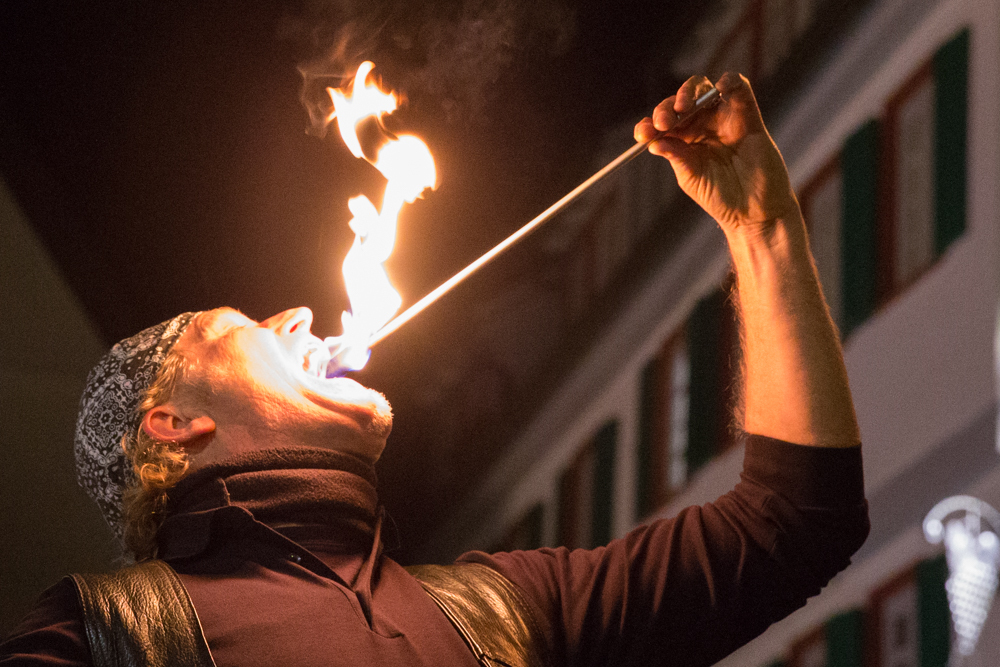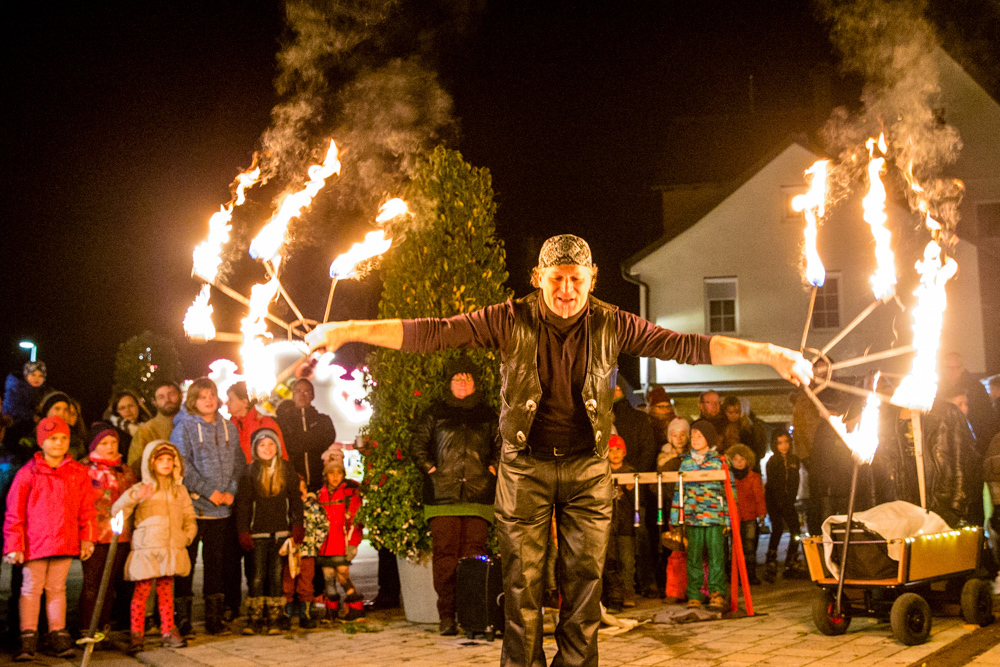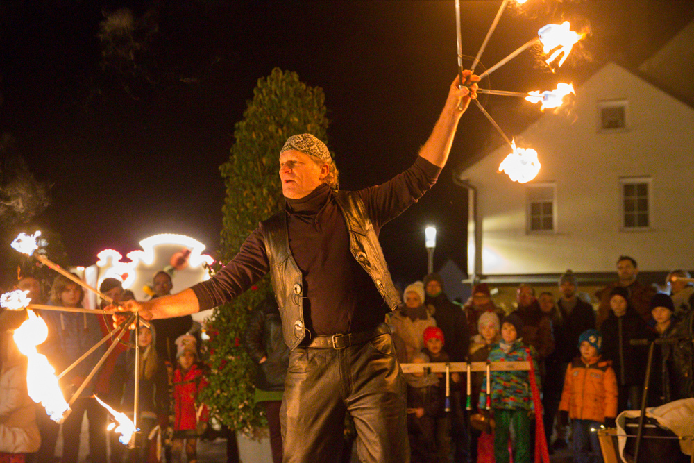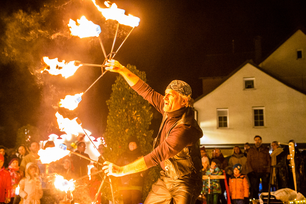 Am 8. Lichterfest konnten sich die vielen Besucher nicht nur über rund 50 Stände und offene Läden freuen, sondern es wurde auch ein umfangreiches Rahmenprogramm mit Märchenstunde, Bauchtanz mit eingebauten LED-Lichtern im Kostüm, Feuerzauber und vielem mehr geboten. Oscar Köngeter agierte auf seinem Pferd Clara als St. Martin beim Laternenumzug.