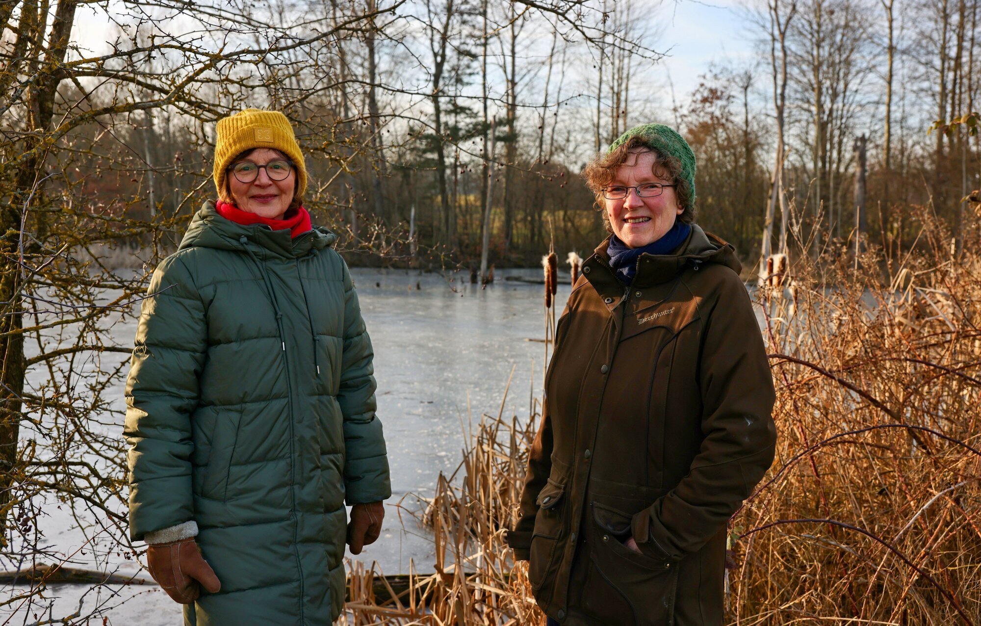Brigitte Greiner und Heike Leutz warten schon auf dem Parkplatz am