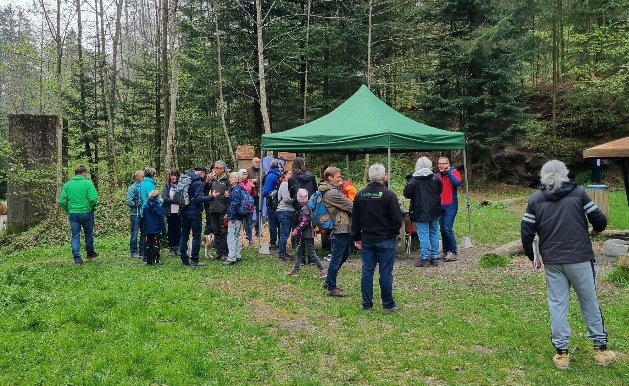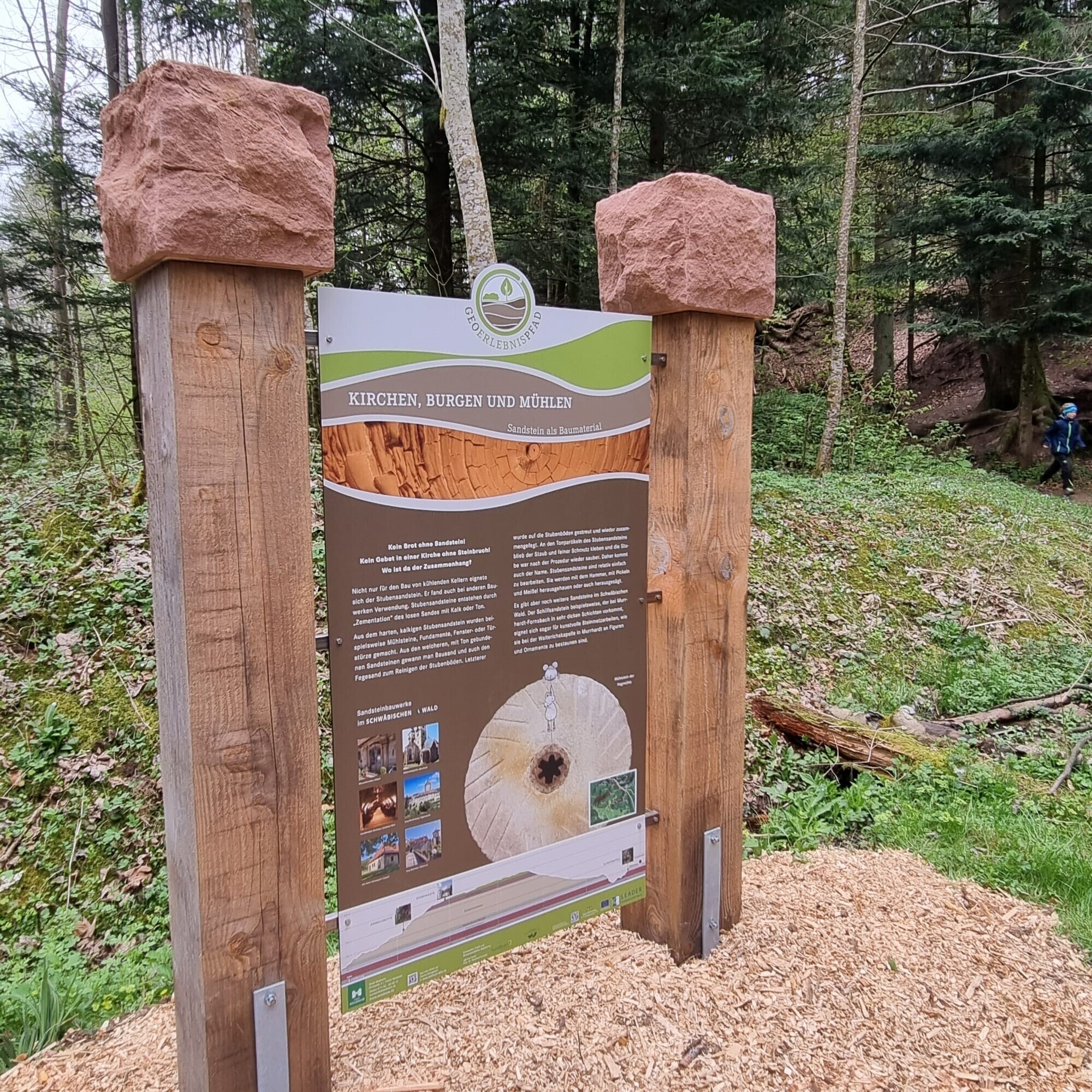 „Kein Brot ohne Sandstein. Kein Gebet in der Kirche ohne Steinbruch...“ – so beginnt der Text der Infotafel, die am Grillplatz beim Steinbruch neben dem Wanderparkplatz Viadukt bei der Laufenmühle den Rundgang des neu gestalteten Geo-Erlebnispfads abschließt.