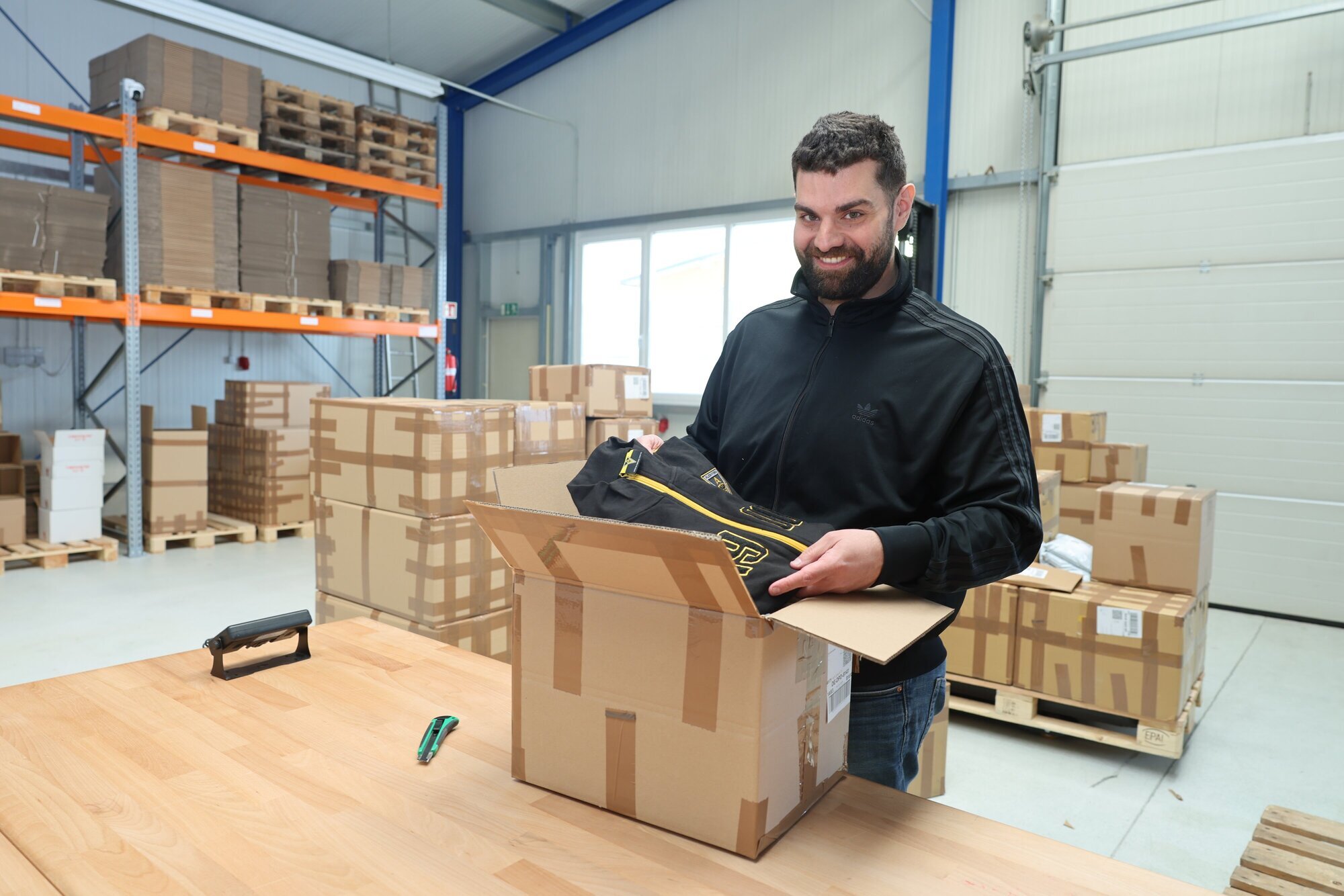Welzheim. Von Welzheim in die Welt – das mag vielleicht etwas großspurig klingen, im Falle des Online-Handels ’Team-Stuff’ von David Carrozzo trifft es tatsächlich zu! Auf seinem Firmenschild steht zwar etwas zurückhaltend „Textil- und Merchandise-Handel“, tatsächlich gibt es bei ihm aber Vereinsbedarf, Fanartikel, Sport- und Mannschaftsausrüstung, die er vor allem im deutschsprachigen Raum, letztlich aber in ganz Europa und weit darüber hinaus vertreibt. Bilder aus der