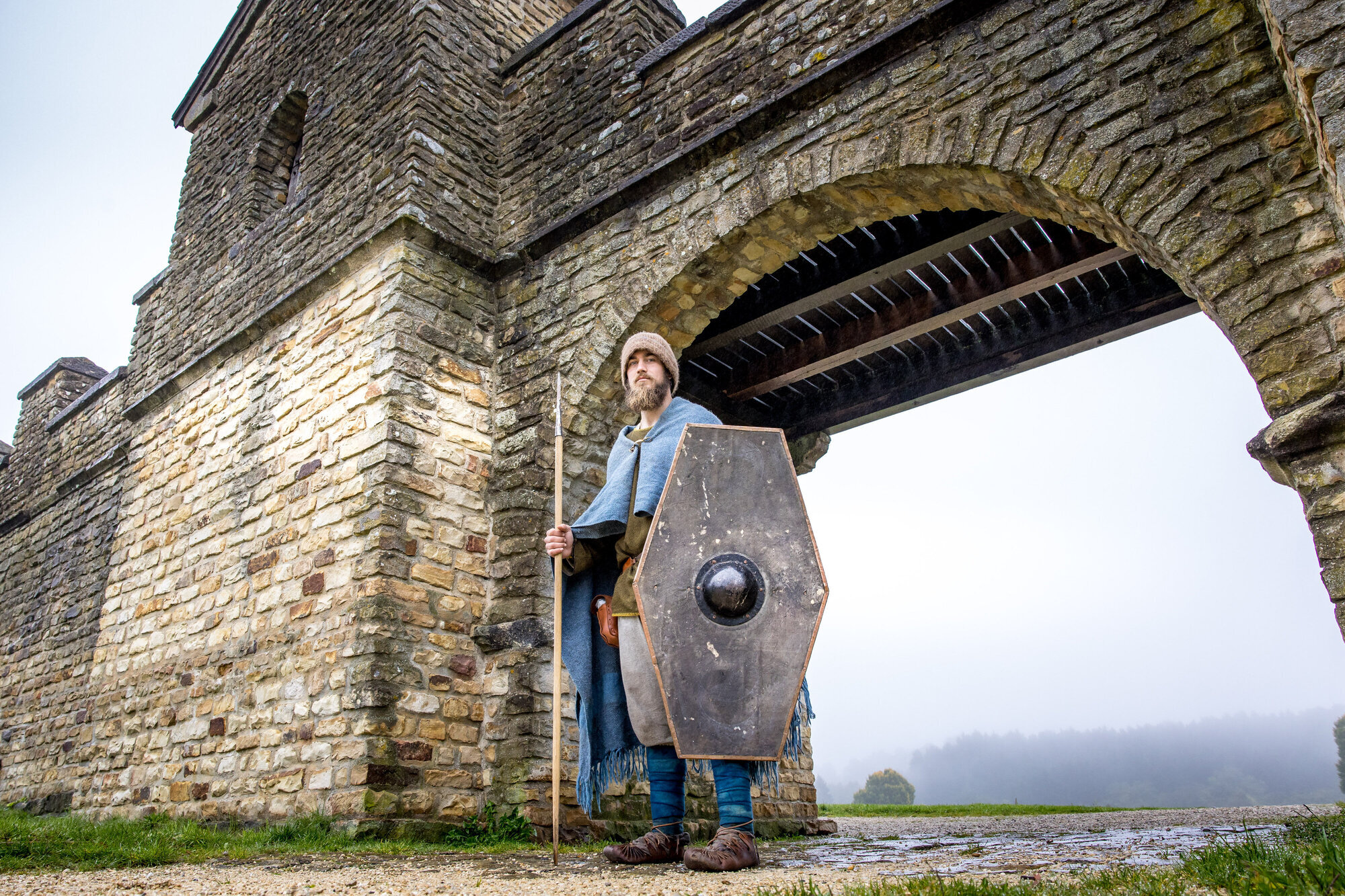 Welzheim. Erst rau, dann ziemlich herzlich: So wurde Limeswanderer Finnian Garvey am Montagabend in Welzheim empfangen. Am Ostkastell wurde der 27-Jährige, gekleidet als Germanenkrieger, zunächst von römischen Truppen gefangen genommen. Er konnte seinen Weltrekordversuch entlang der alten römischen Grenze dann aber doch noch unbeschadet fortsetzen.