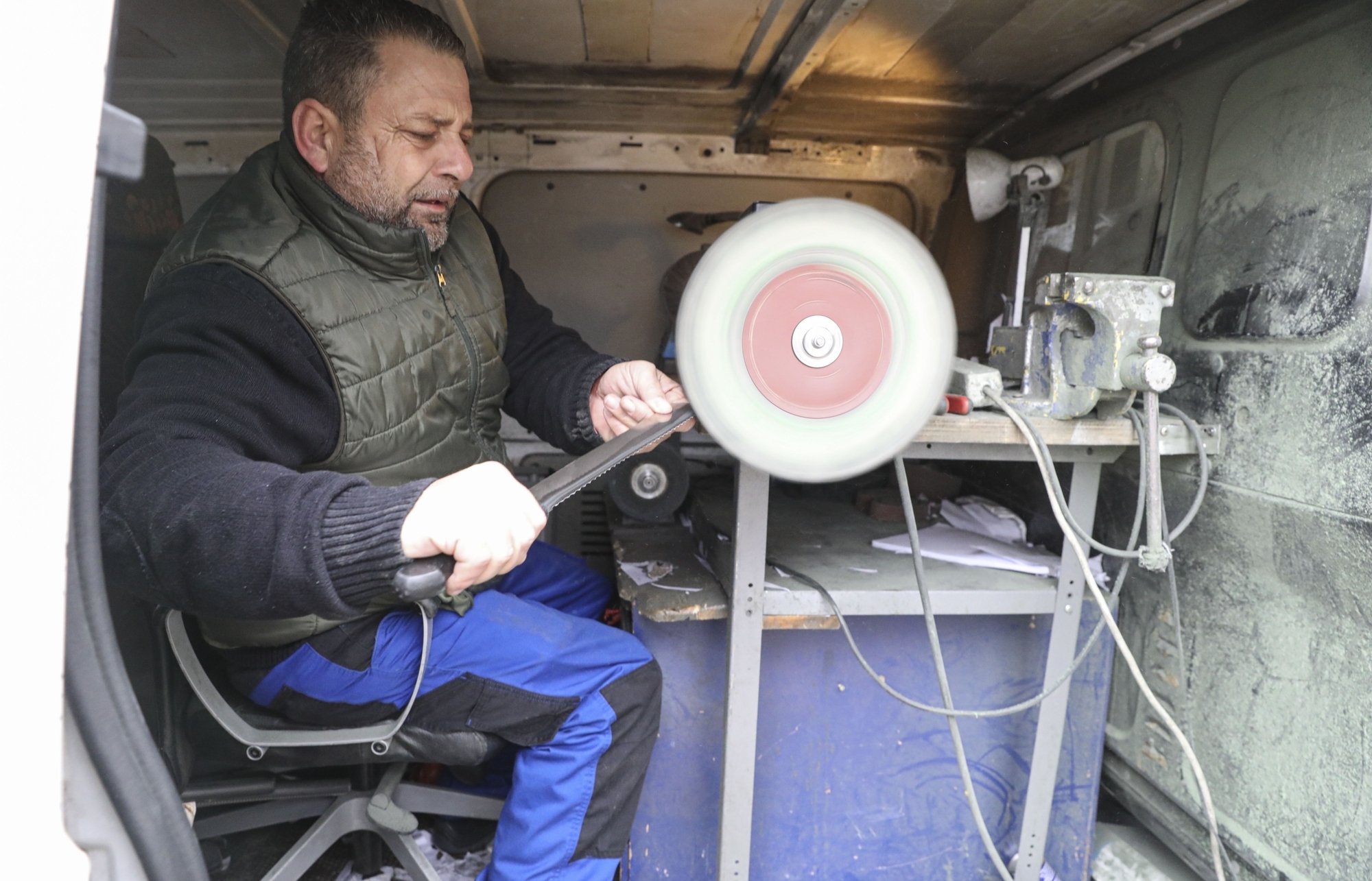 Freundlich begrüßt Romeo Weiß seine Kunden in Welzheim und er lächelt dabei über beide Ohren. Er nimmt sich Zeit, begutachtet kurz die mitgebrachten Gegenstände, schätzt diese ein und beginnt diese dann auf Wunsch zu schleifen oder zu polieren. Mit seinen handwerklichen Händen, die wohl Geschichten zu erzählen hätten, hält der erfahrene Scherenschleifer präzise die zu schleifenden Gegenstände und setzt an: von Kochmessern, Besteckmessern und Scheren, über Rasenmähermesser, Heckenscheren