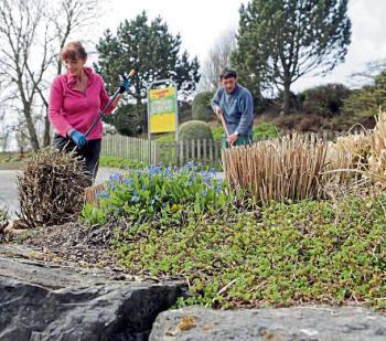 Der Weg führt die Gäste vorbei am neuen Koiteich, der von einem künstlichen Bachlauf gespeist wird, der ein paar Meter durch den Park mäandert. Nebenan werden noch Pflanzen und Wege verschönert. Wer denkt, drei, vier Tage vor Parkeröffnung kehre Ruhe ein, irrt gewaltig.