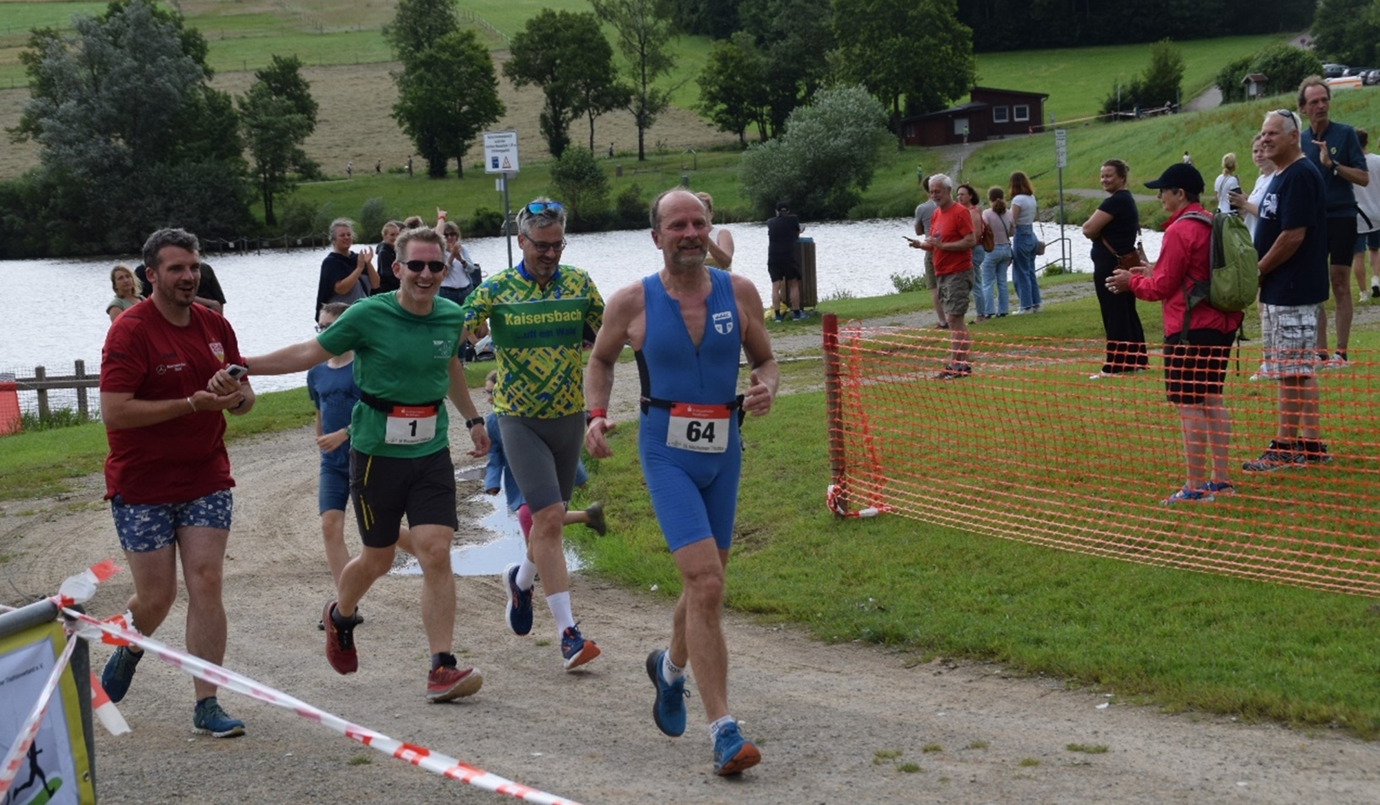 Rund 300 Starter und viele Zuschauer waren beim 39. Welzheimer Triathlon am vergangenen Samstag. Betreut wurden sie vom Orga-Team der Turn- und Sportfreunde (TSF). Während die Außentemperaturen recht angenehm waren, hatte der Aichstrutsee lediglich knapp 20 Grad Celsius Wassertemperatur. Auch hat das Regenwetter am Ende des Wettkampfs und vor allem beim Abbau den Organisatoren etwas zugesetzt und sie durchnässt, wie die TSF berichten.