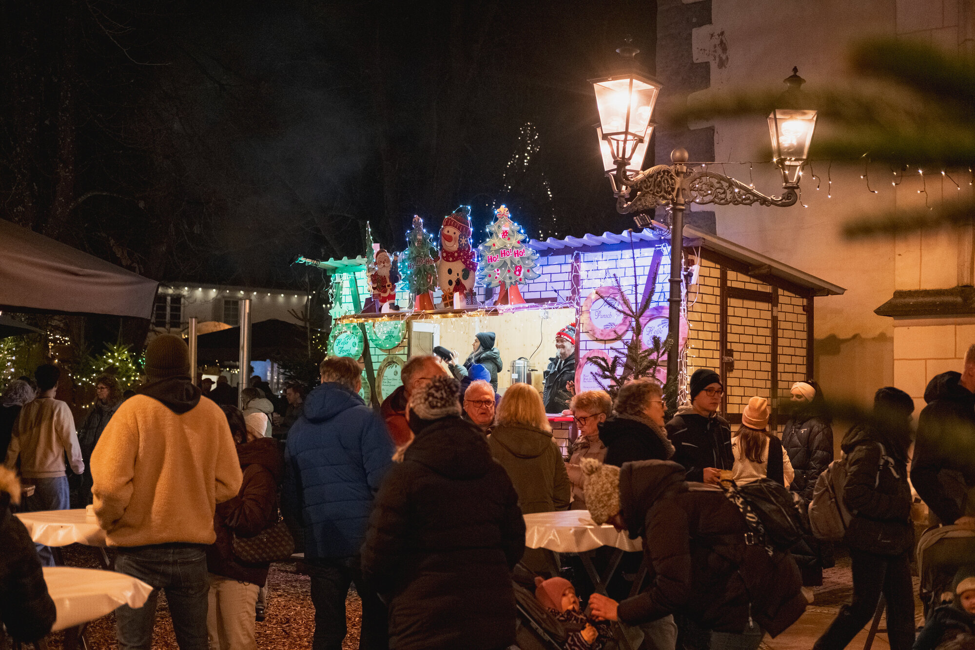 Welzheim. Freitag, 19 Uhr. Die Pfarrstraße in Welzheim ist still, im Kinderhaus glimmt durch die Glastür nur ein schwaches Nachtlicht. Hinter den Fenstern der „1und1“-Kaffeerösterei leuchtet es adventlich rot, aber auch dort herrscht abendliche Ruhe. Dann biegt man um die Kurve in Richtung St.-Gallus-Kirche - und plötzlich wird es hell und bunt und laut… und der ganze Kirchplatz strahlt. Vor einer Stunde hat das Welzheimer Weihnachtsdorf angefangen.