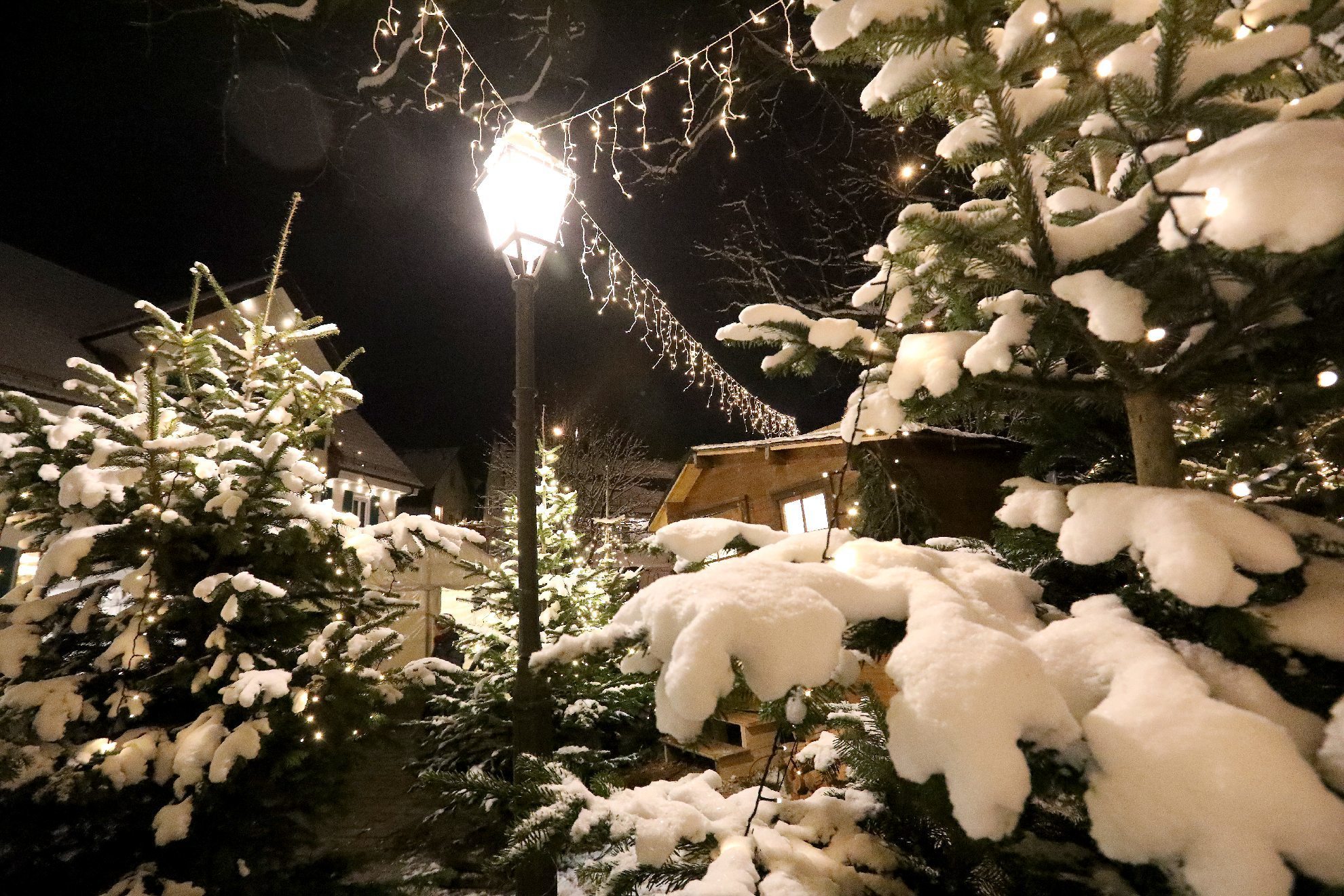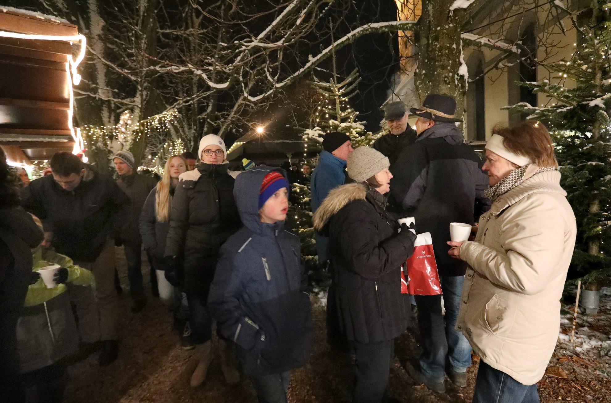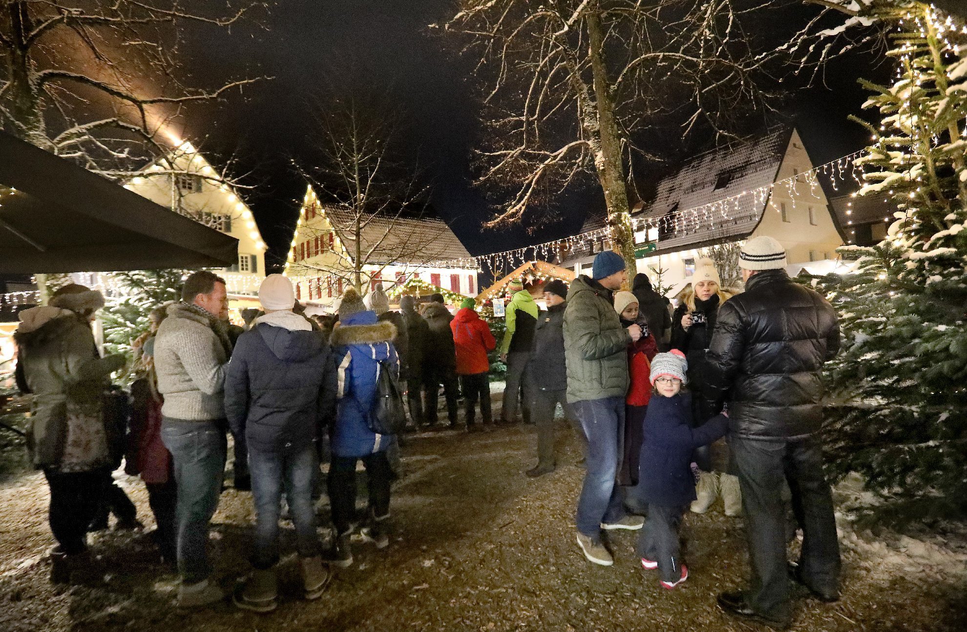 Das Schimpfen übers Wetter bringt ja sowieso nichts. Viel schlimmer wären lauwarme Temperaturen für einen Weihnachtsmarkt gewesen. Zudem noch versöhnte der weiße Teppich, der sich in den letzten Tagen über den Welzheimer Wald gelegt hatte. Auch wenn es nur ein dünner ist. Von Wintersport noch keine Spur. Aber für das Weihnachtsdorf gerade richtig.
