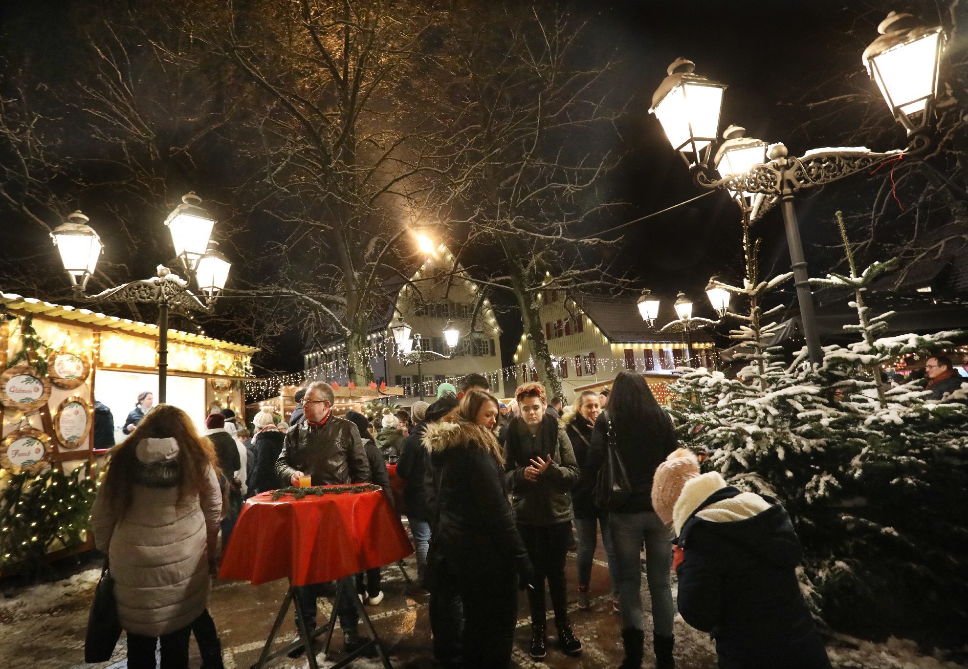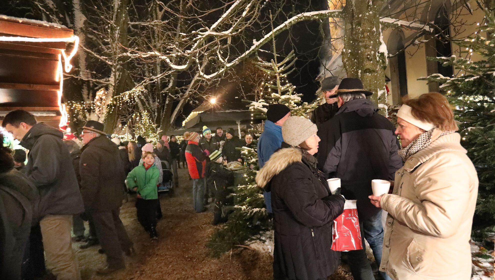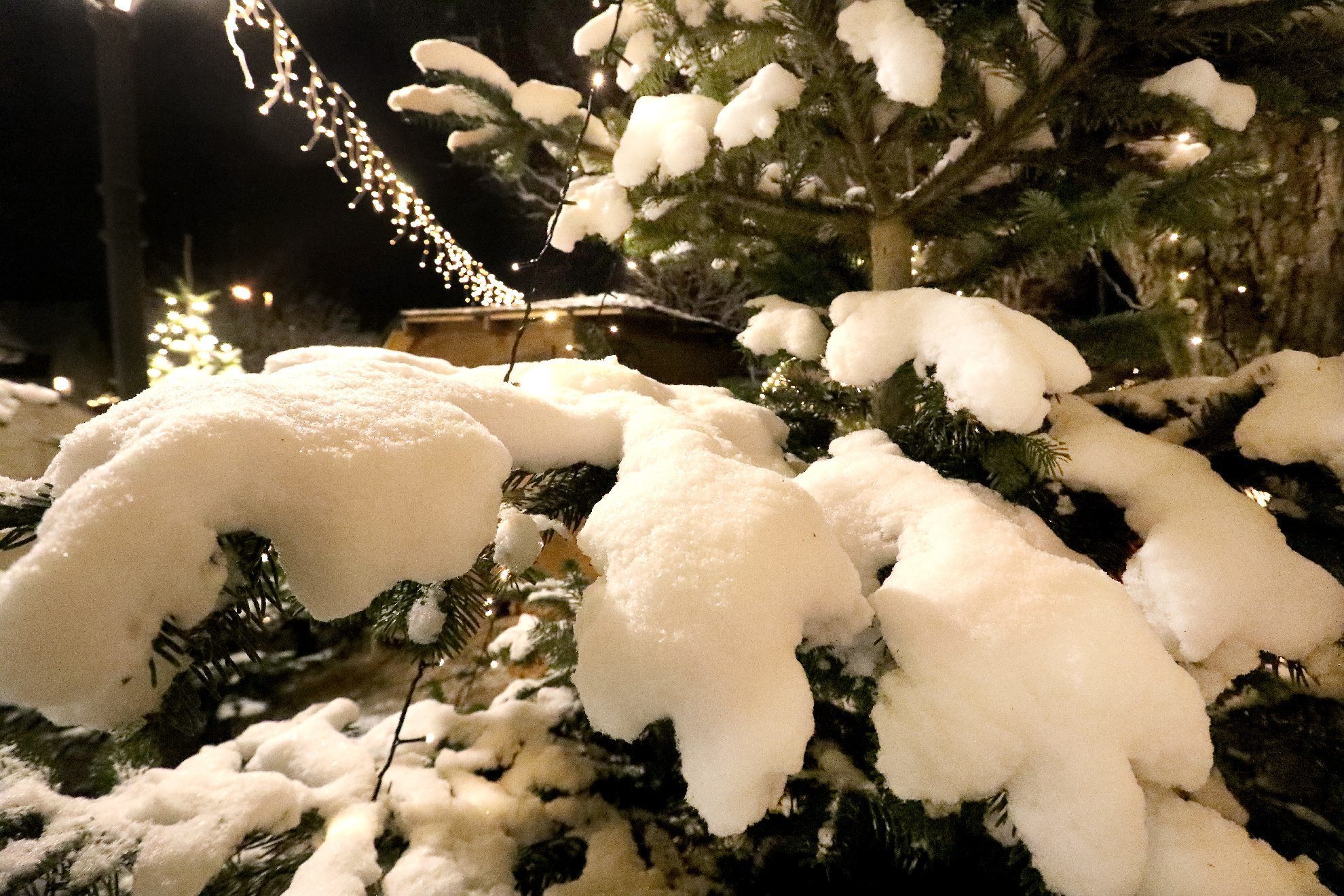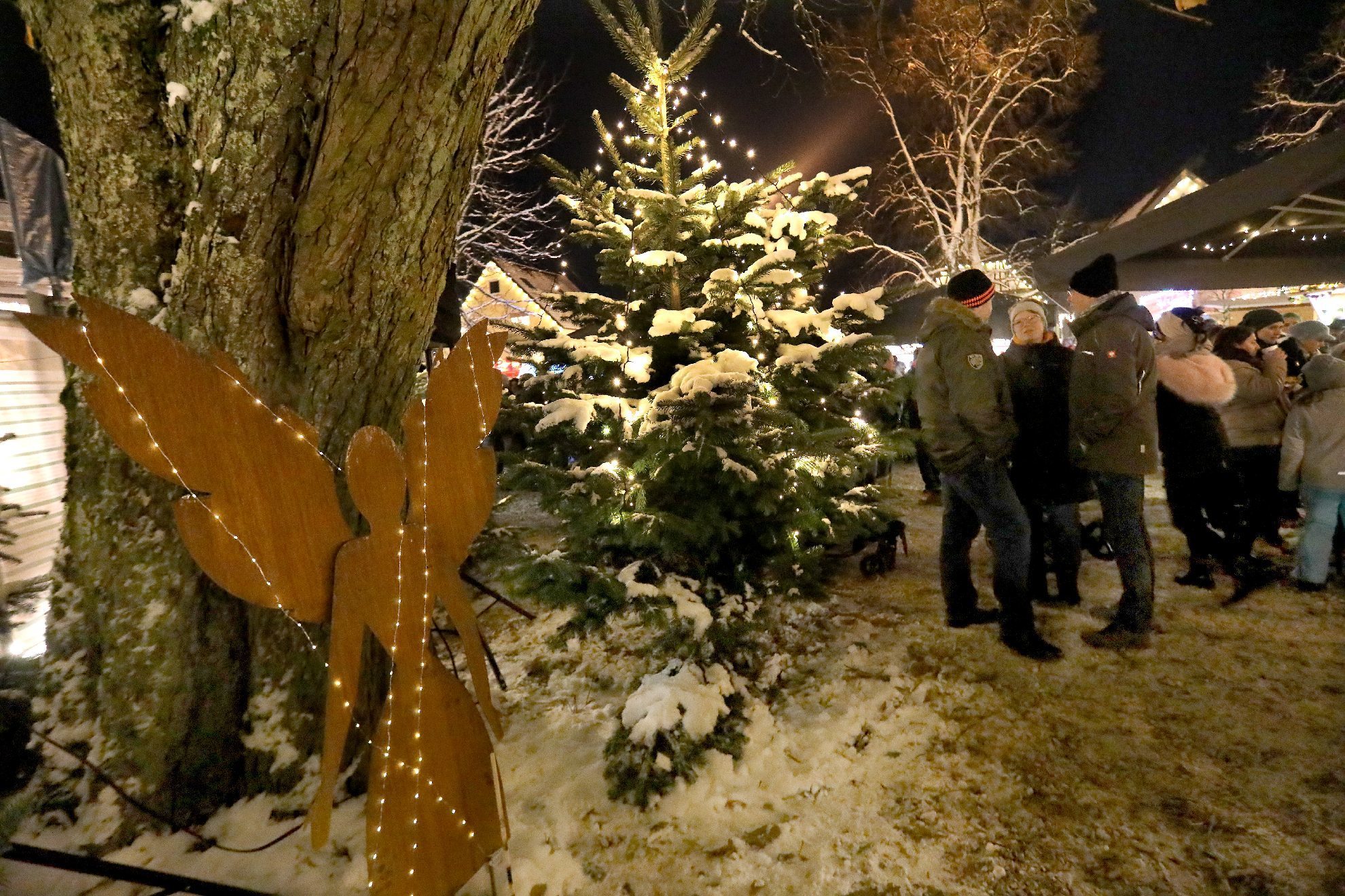 Das Schimpfen übers Wetter bringt ja sowieso nichts. Viel schlimmer wären lauwarme Temperaturen für einen Weihnachtsmarkt gewesen. Zudem noch versöhnte der weiße Teppich, der sich in den letzten Tagen über den Welzheimer Wald gelegt hatte. Auch wenn es nur ein dünner ist. Von Wintersport noch keine Spur. Aber für das Weihnachtsdorf gerade richtig.